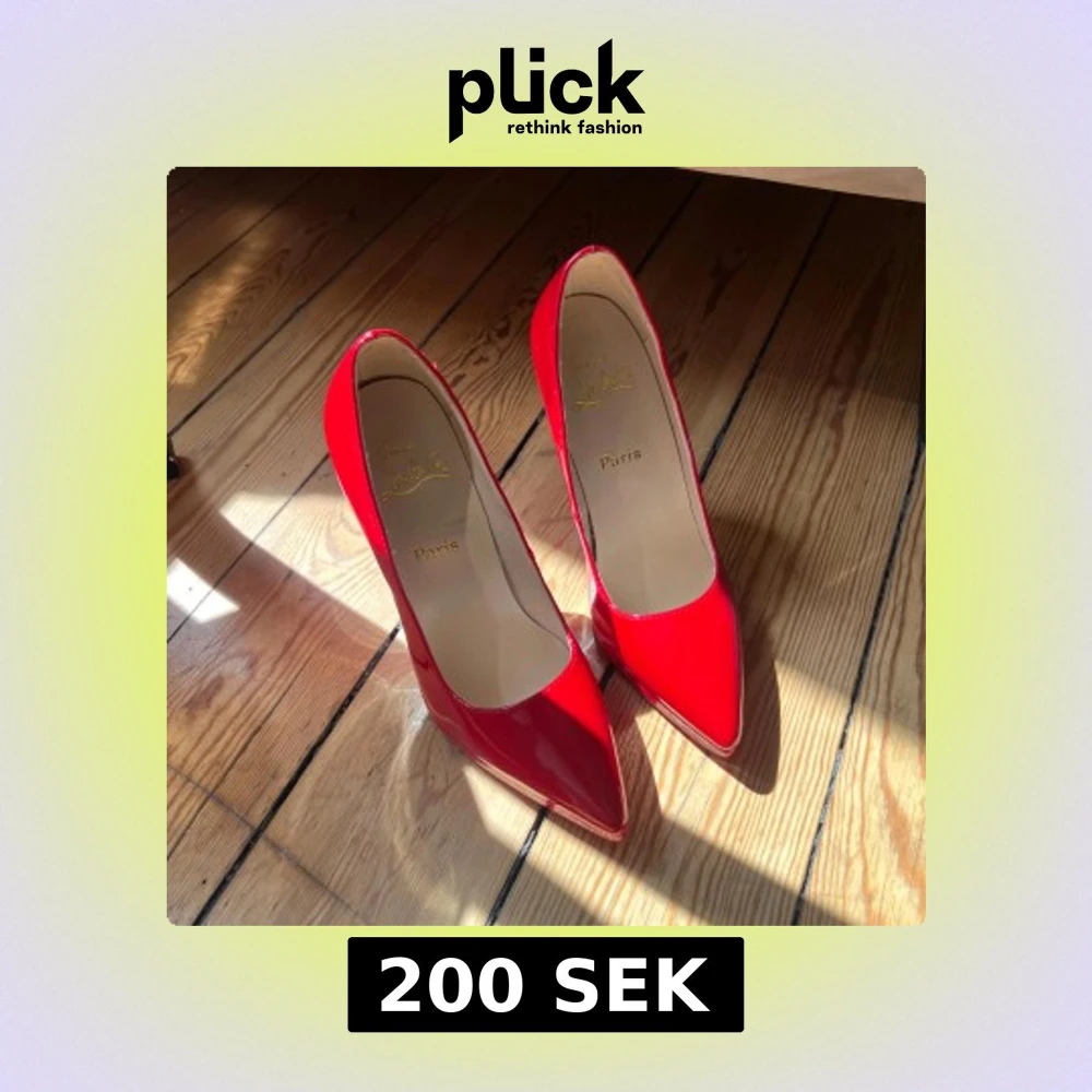Christian Louboutin liknande stilettklackar i en galet snygg röd färg i lack, som har den ikoniska röda sulan. Jag har aldrig använt dem pga för små. Köpta på en second hand butik.