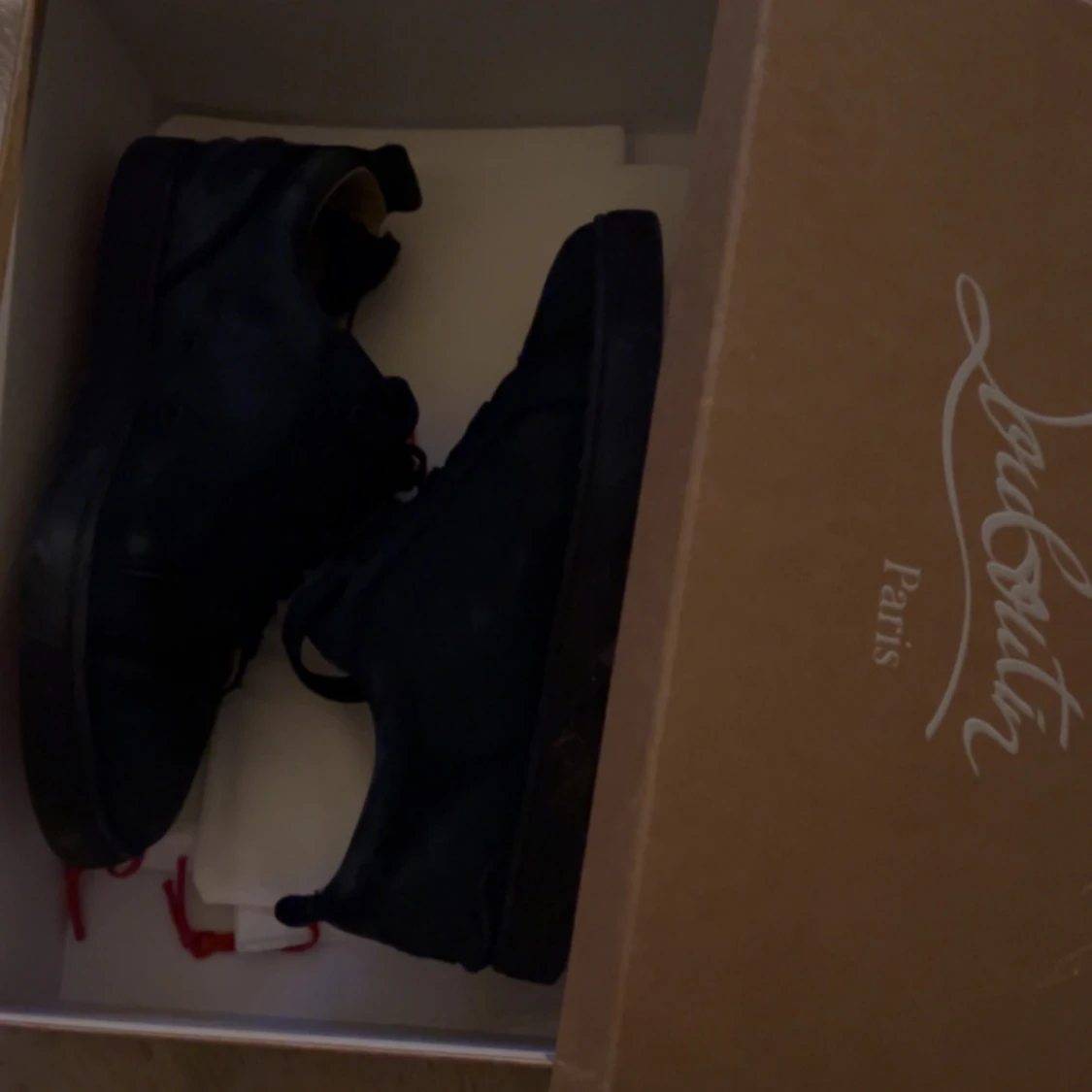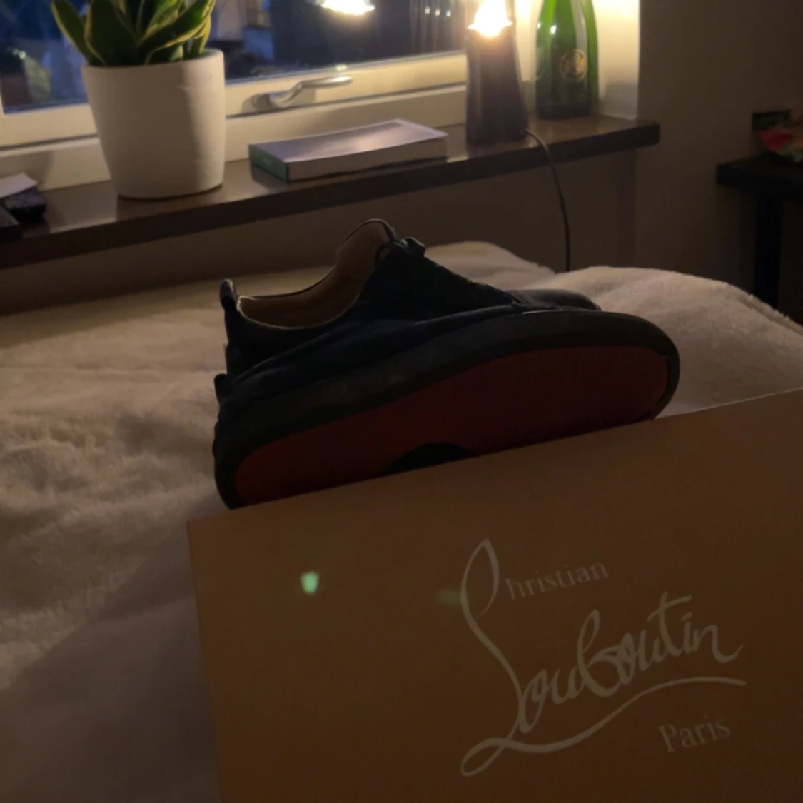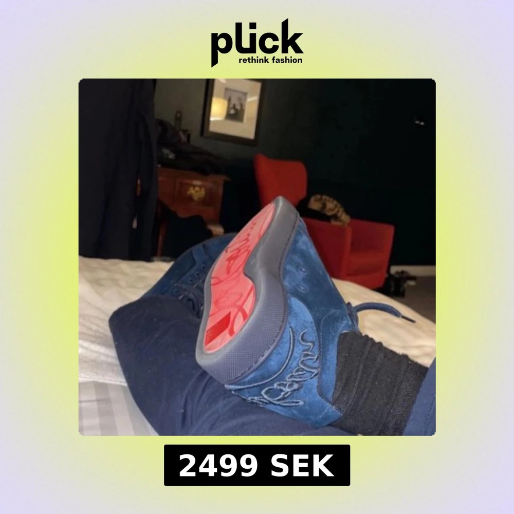 Säljer nu mina mörkblåa christian louboutin. Condtion 7/10. Köpta på det kända varuhuset harrods i london england. Har allt orignal kvar sp kvitto box dustbag följer med via köpet. Storlien är 40 men passar upp till 42. Hör av er vid mer frågor eller funderingar