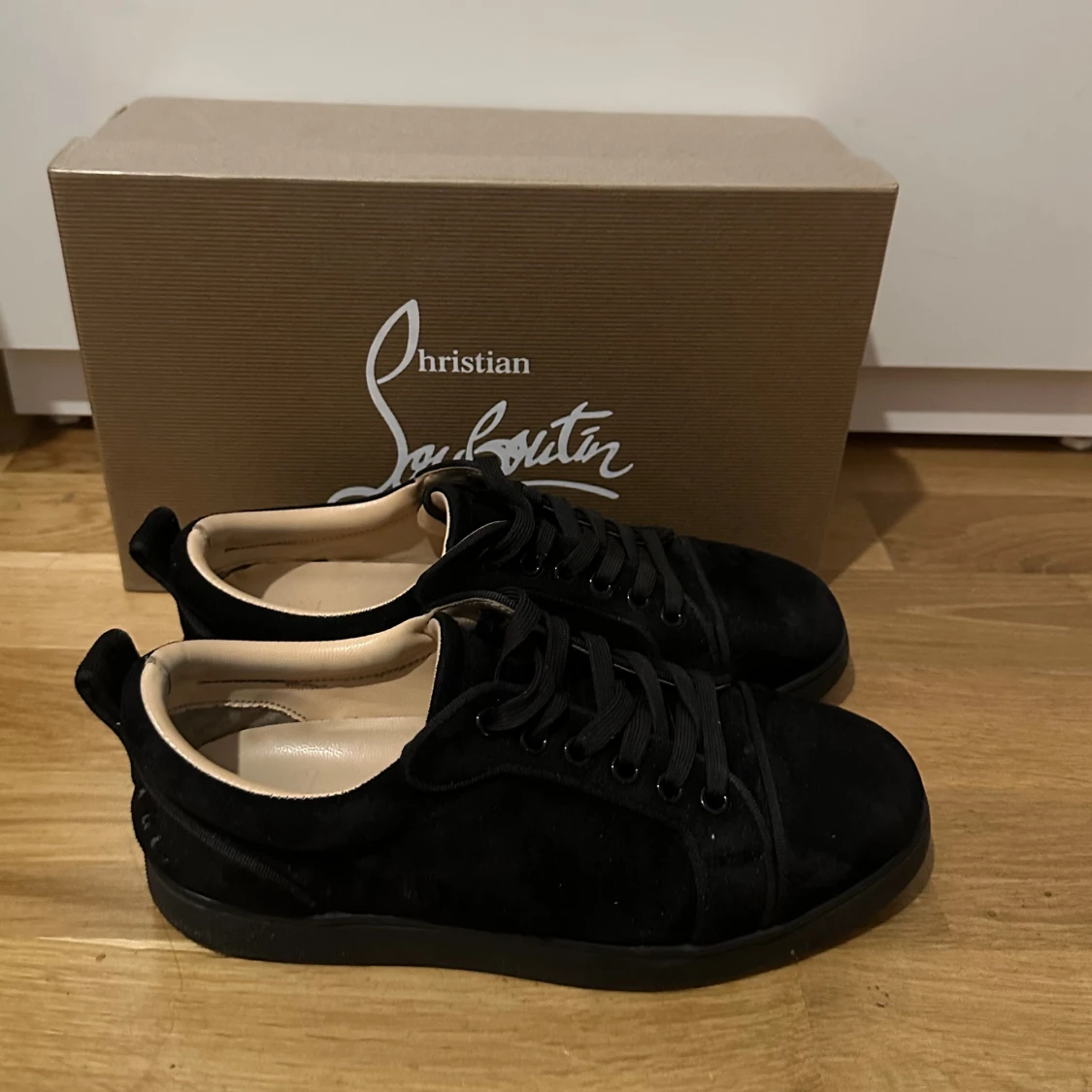 Svarta skor från Christian loubotin. Stilrena skor som ser väldigt bra ut med en röd sula vid. frågor så är det bara att skicka meddelande!