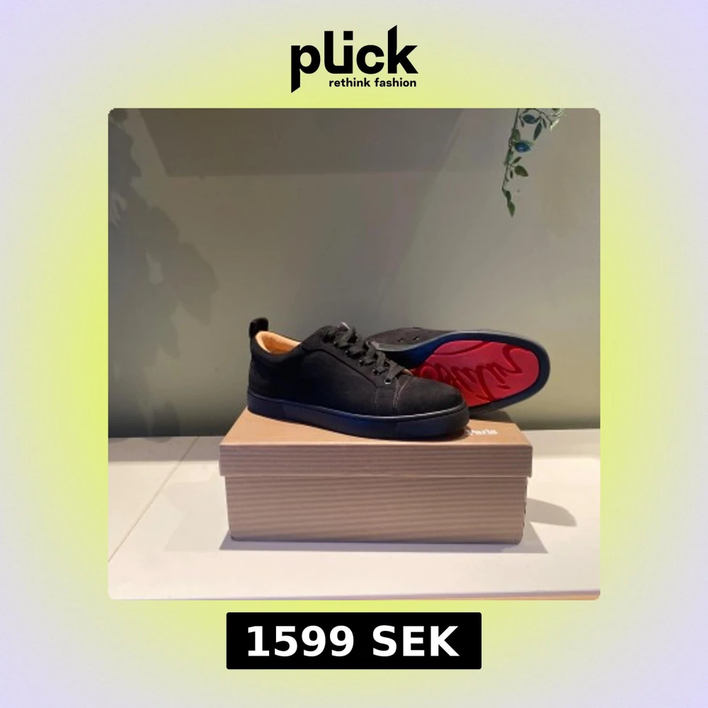 Snygga svarta sneakers från Louboutin i mocka med klassisk röd sula och diskret snörning. Stilren och lyxig design som sticker ut med den ikoniska röda undersidan. Perfekta för dig som vill ha något extra till din outfit. Send melding for fler bilder.