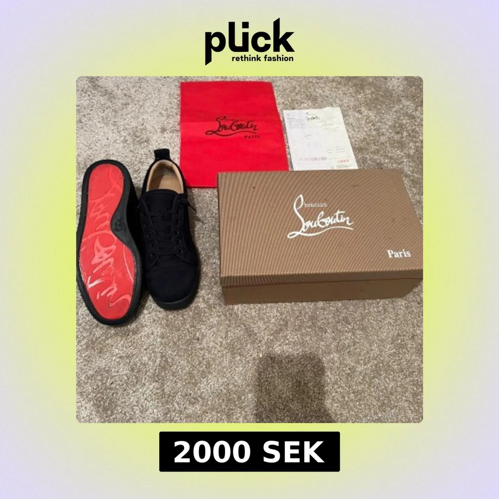 Snygga svarta sneakers från Christian Louboutin i mocka med klassisk röd sula och rund tå. Skorna har svarta snören och diskreta metalldetaljer på sidan. Perfekta för dig som vill ha en lyxig och stilren look med en ikonisk touch. Använda en gång kan bytas