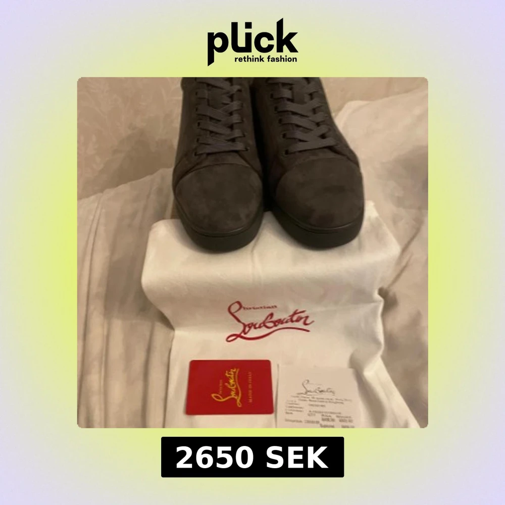 Snygga grå sneakers från Christian Louboutin i mjuk mocka med klassisk röd sula. Skorna har rund tå, platt sula och snörning. Perfekta för dig som vill ha en exklusiv och stilren look med en lyxig touch.