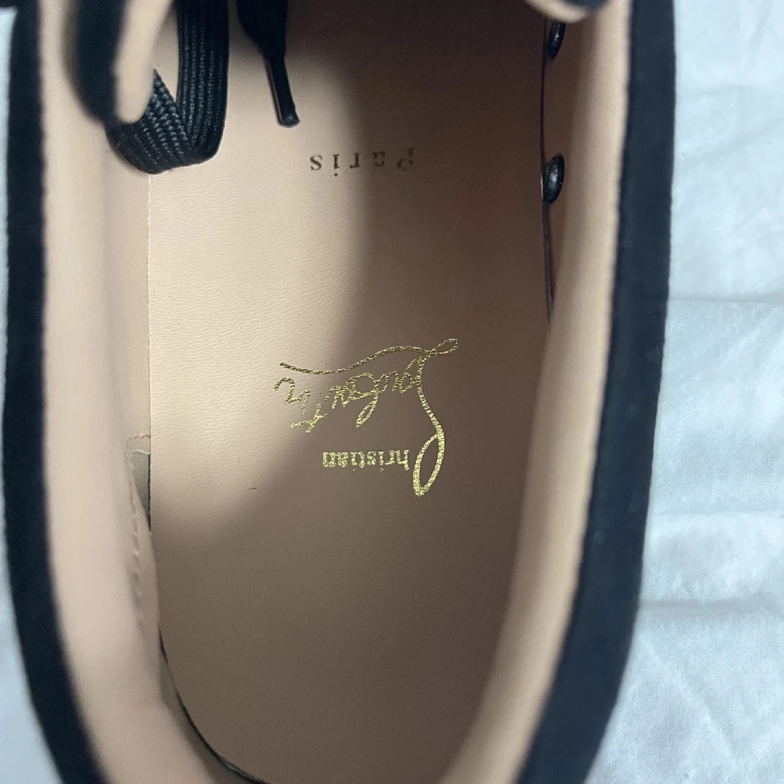 Snygga svarta loubs i mocka från Christian Louboutin med den ikoniska röda sulan. Skorna har snörning och en stilren design som passar perfekt för en trendig look. Ny pris 8000kr men jag säljer för 3850kr kn gå ner i pris vid snabb affär! För gällande frågor är det bara att skriva!