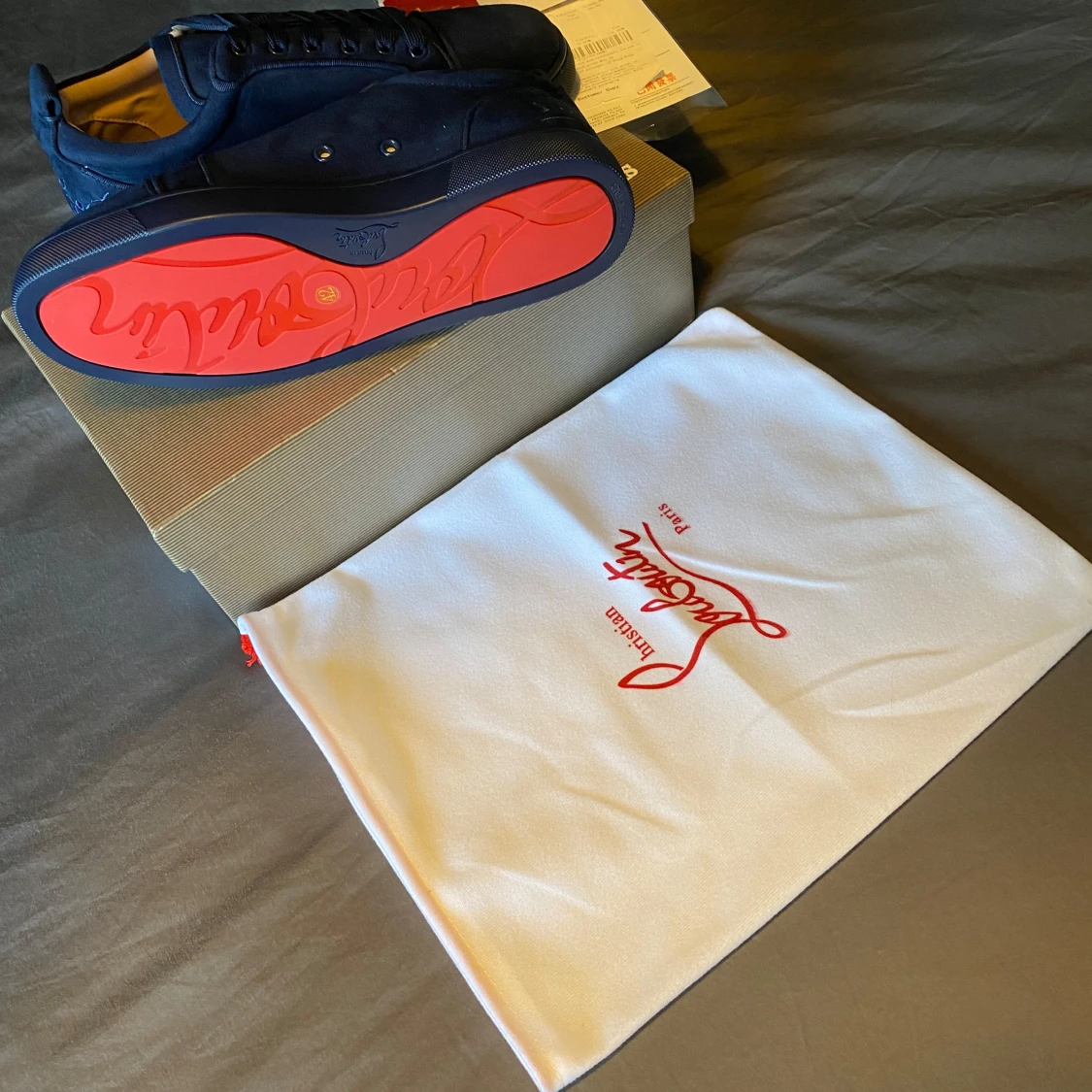 Den är i storlek 42, dvs 27cm i längd och 9cm bred. Allting tillkommer på bilderna -> Dustbag kvitto och lådan med kommer. Priset är ej hugget i sten. Vid snabb affär kan priset diskuteras!