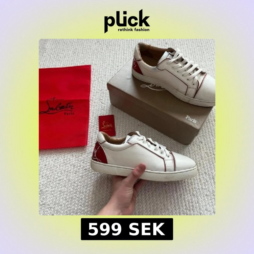 Snygga vita sneakers från Christian Louboutin med röda detaljer och signatur på hälen samt röd sula. Skorna har snörning, rund tå och är tillverkade i skinn. Perfekta för dig som vill sticka ut med exklusiva och trendiga sneakers.