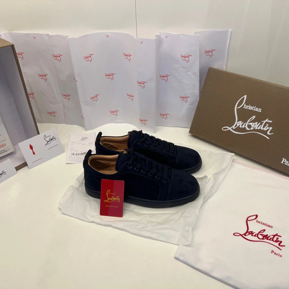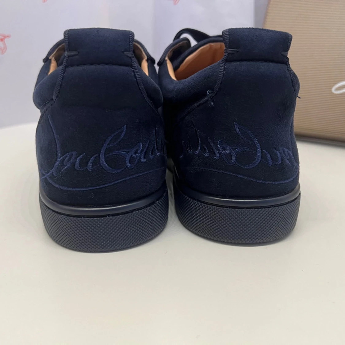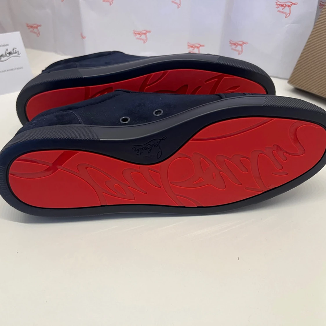 Mörkblå mocka skor från Christian loubitins i storlek 42. Skorna är i ett nytt skick utan användning. Du får med alla tillbehör. Skriv för någon annan info. Köp dom för 1499 (100kr+) så får du med ett valfritt bälte inne på mitt kontakt av ditt val