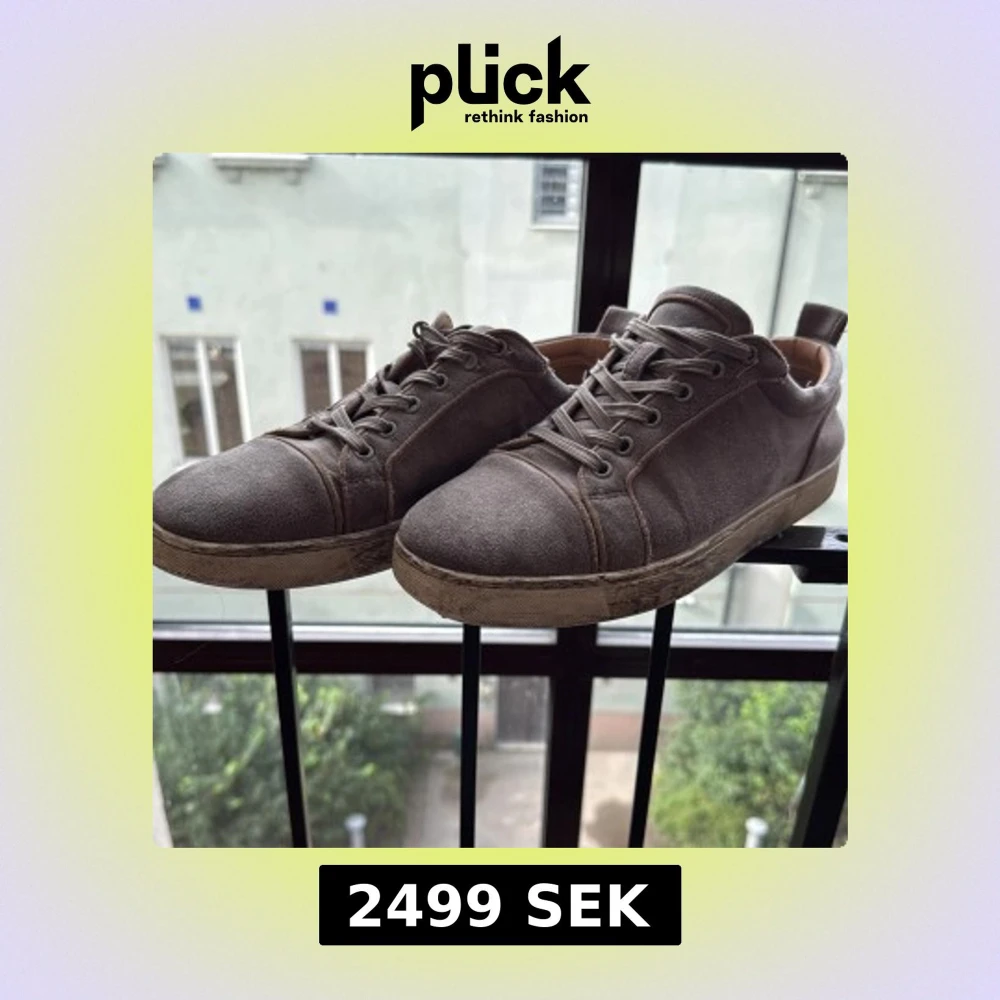 Snygga louboutins i grå mocka med klassisk snörning och rund tå. Skorna har en platt sula och stilren design som passar till det mesta. Perfekta för dig som gillar en enkel men trendig look. Passar storlek 44. Dustbag, box och kvitto följer med.