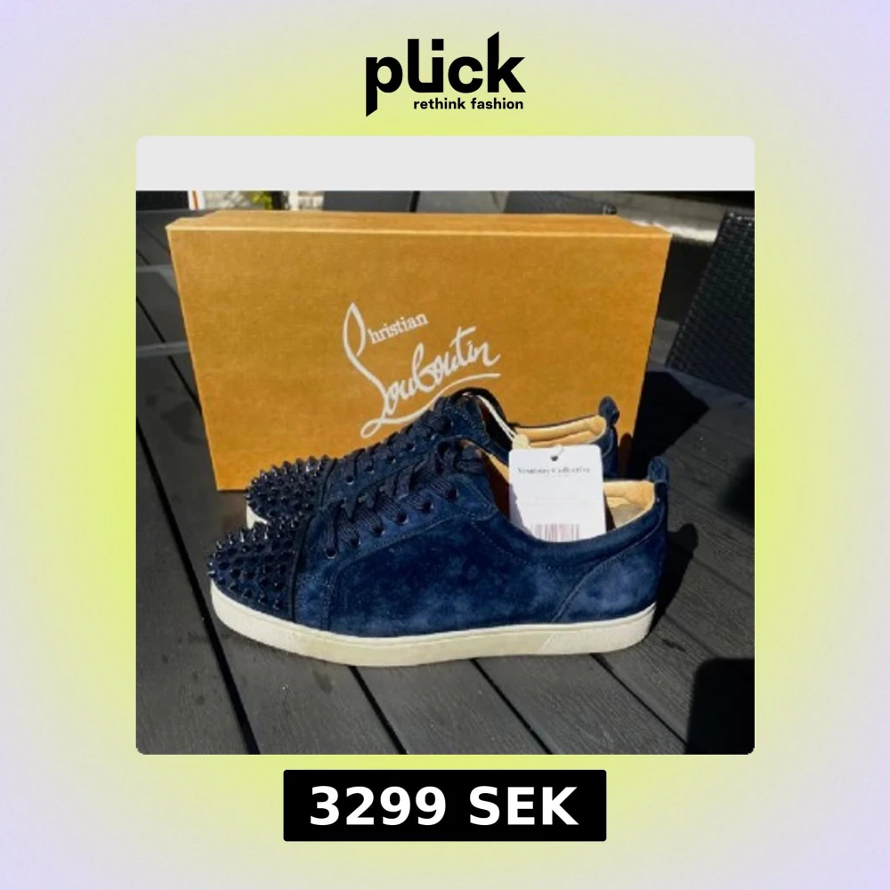 Tjena! Säljer nu dessa sjukt feta och eftertraktade skorna från märket Christian Louboutin. Box och kort ingår! Skorna är i en navy färg🔵 storleken är 43 men passar även 42/44! Kontakta mig vid minsta fundering.