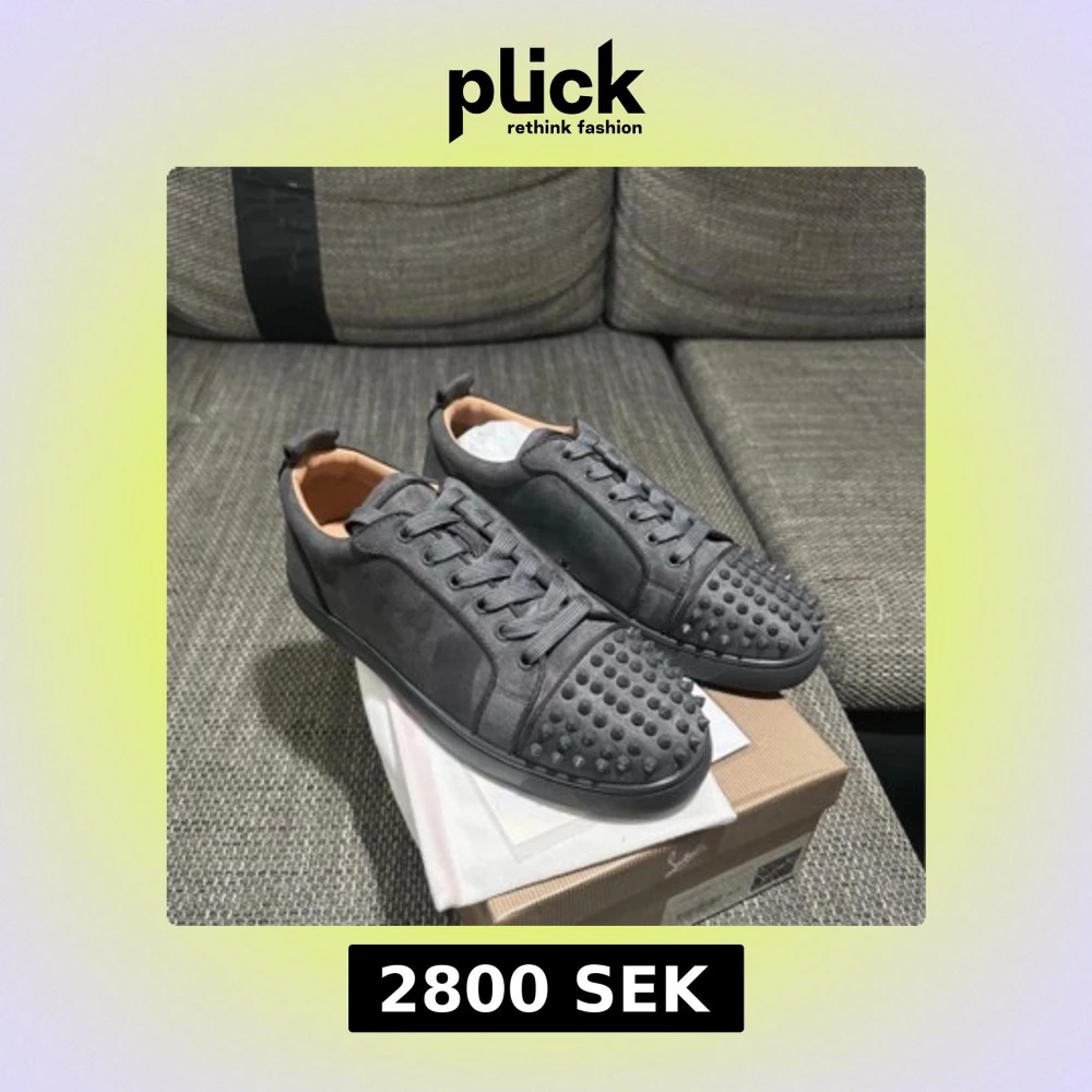 Snygga svarta sneakers från Christian Louboutin med ikoniska röda sulor och coola nitar på ovansidan. Skorna har snörning och är perfekta för att ge din outfit en edgy touch.