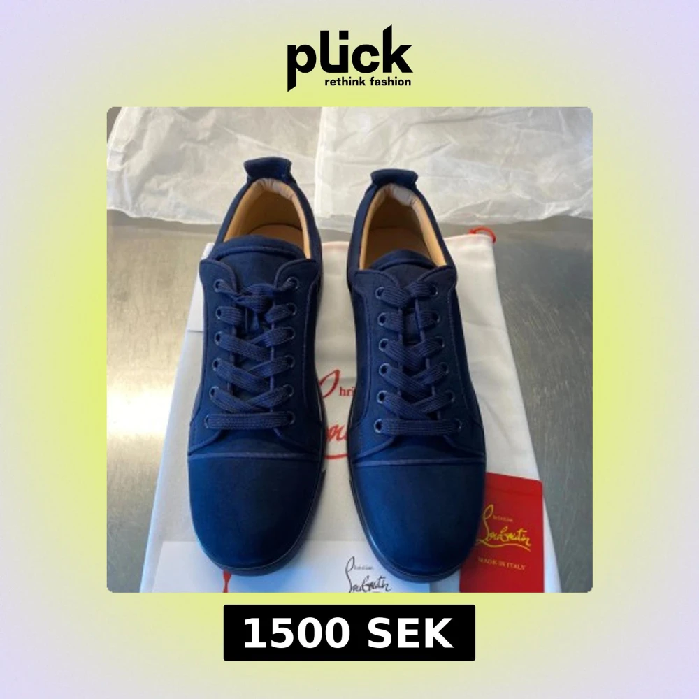 Snygga mörkblå sneakers från Christian Louboutin i mocka med klassisk röd sula. Skorna har rund tå, platt sula och ton-i-ton snörning. Broderad logga baktill och diskreta detaljer ger en lyxig känsla. Perfekta för dig som vill sticka ut med stil.