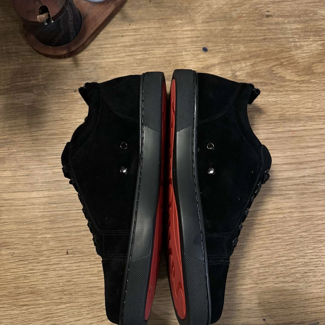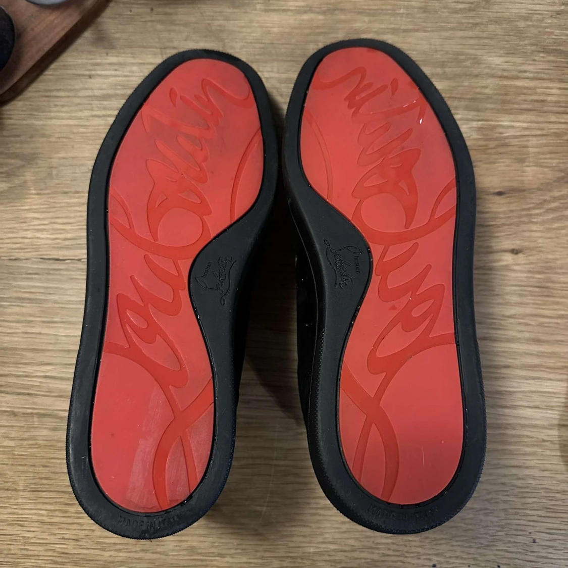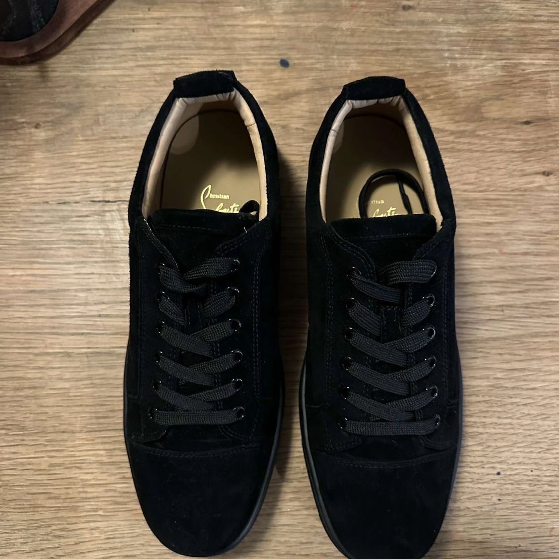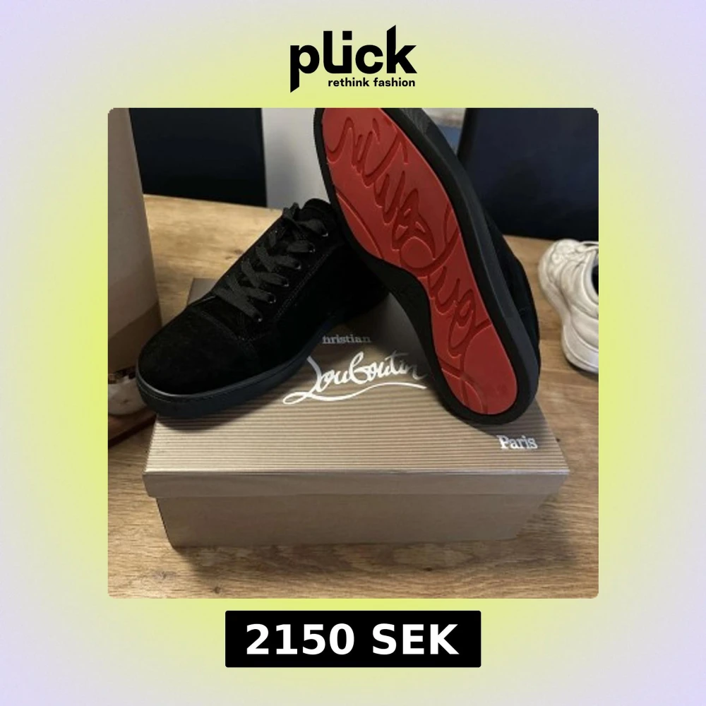 Louboutin sneakers – strl 43 • Svarta sneakers utan spikar • Röd sula • Nyskick, inga skador • Endast testade inomhus Ingår: • 2x dustbags • Liten dustbag • Skohorn • Extra skosnöre • Låda och påse 📩 Hör av dig vid minsta fundering!