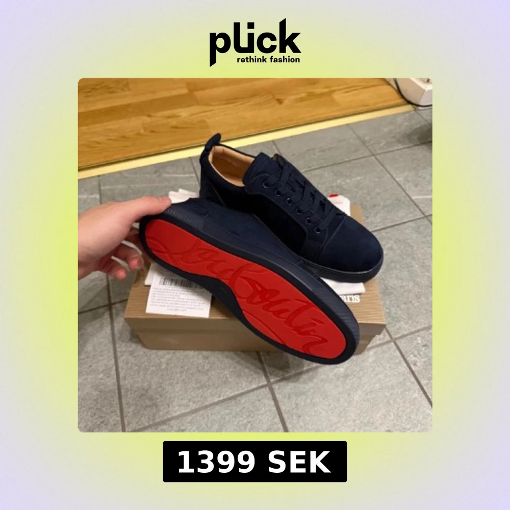 Ny skick. Storlek 43. Sitter bra i storlek Snygga mörkblå sneakers från Louboutin i mocka med klassisk röd sula och diskret logga undertill.