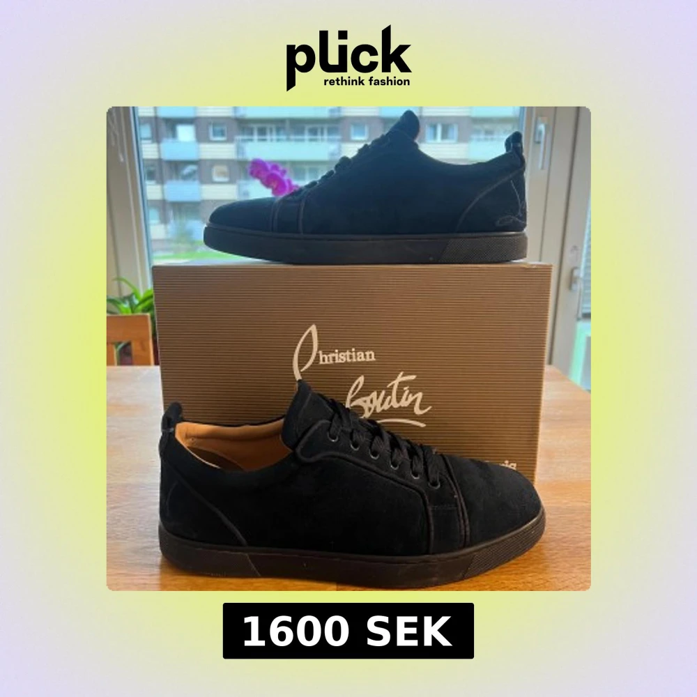 Snygga mörkblåa sneakers från Christian Louboutin i mjuk mocka med rund tå och snören som matchar skorna. Skorna har diskret broderad logga på hälen och den ikoniska röda sulan. Perfekta för dig som gillar stilrena och exklusiva sneakers med lyxig känsla.