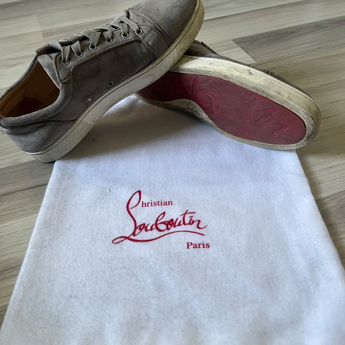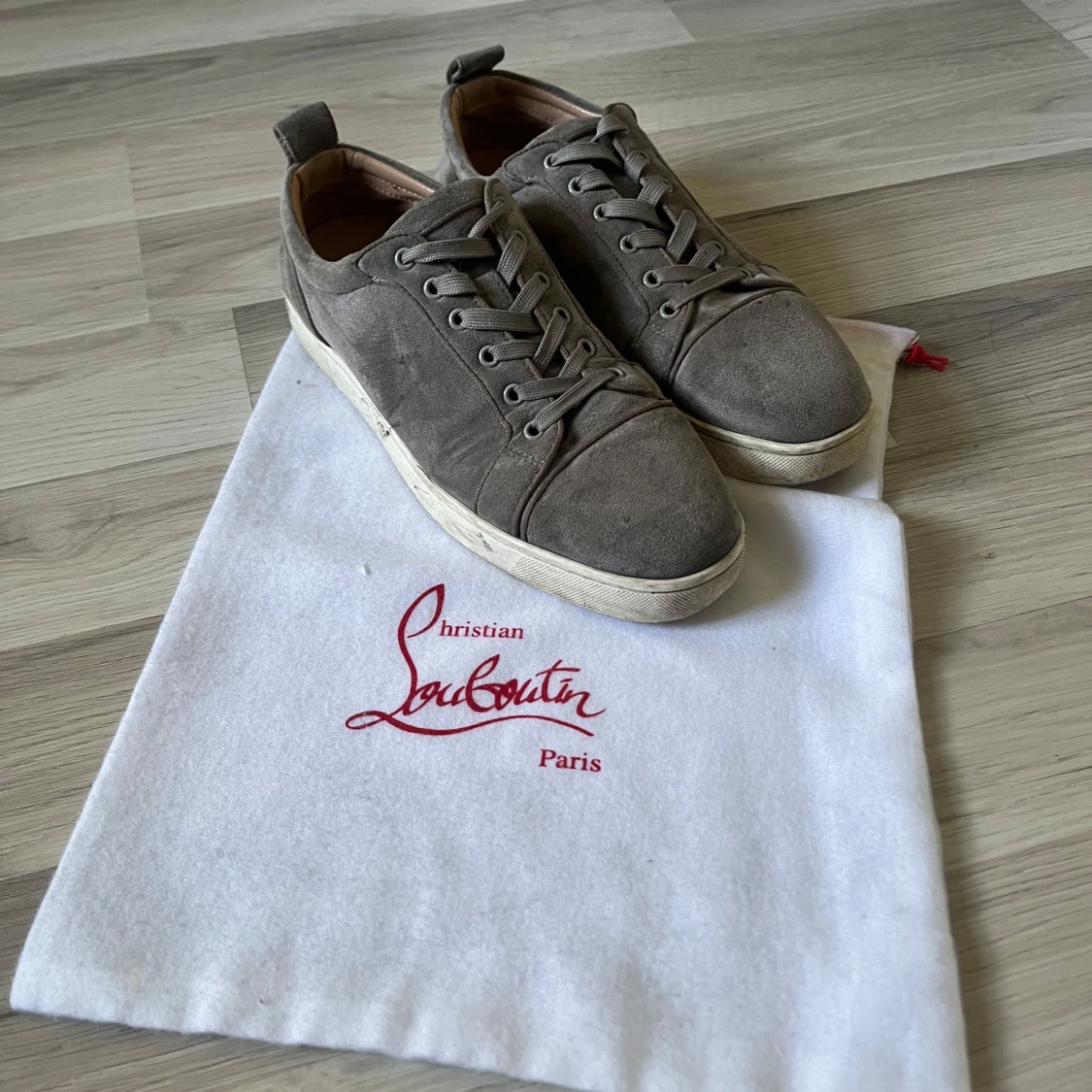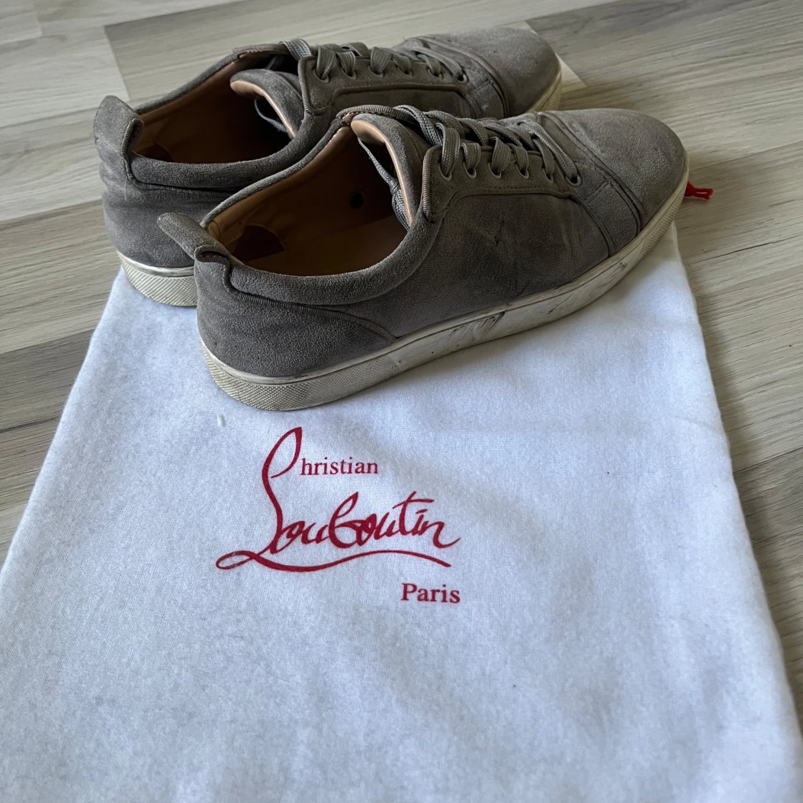 Hej, säljer nu mina gråa loubs som jag har använt en del. De skulle behöva en tvätt så ser de nog inte så illa ut. Det är absolut använda men funkar jättebra och har mycket liv kvar i sig. Storlek 43 men passar 42 med skulle jag säga. Dustbag fås med. Hör av er vid frågor eller ifall det behövs mer bilder👍