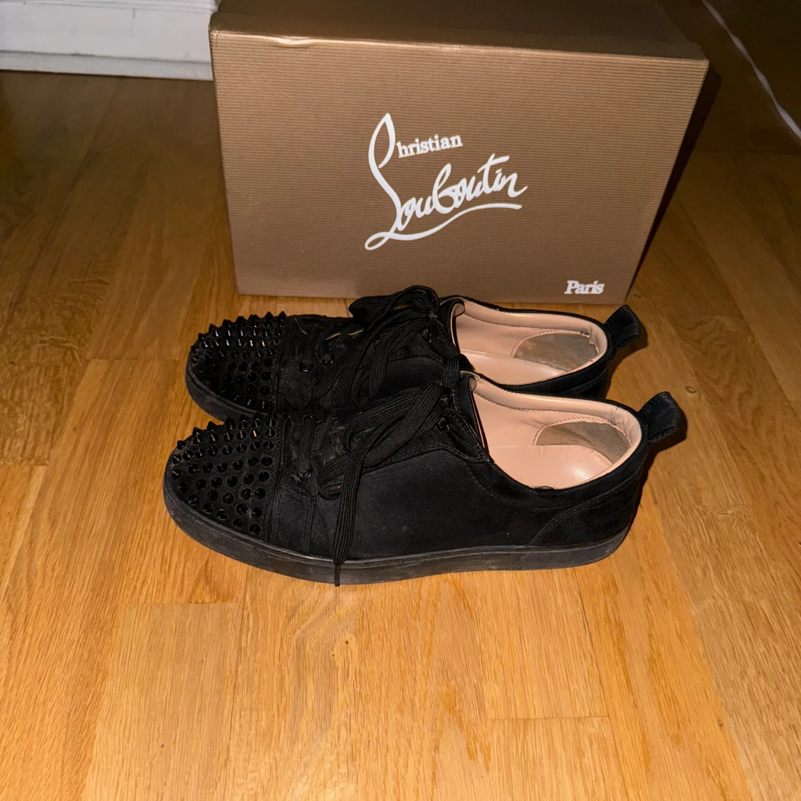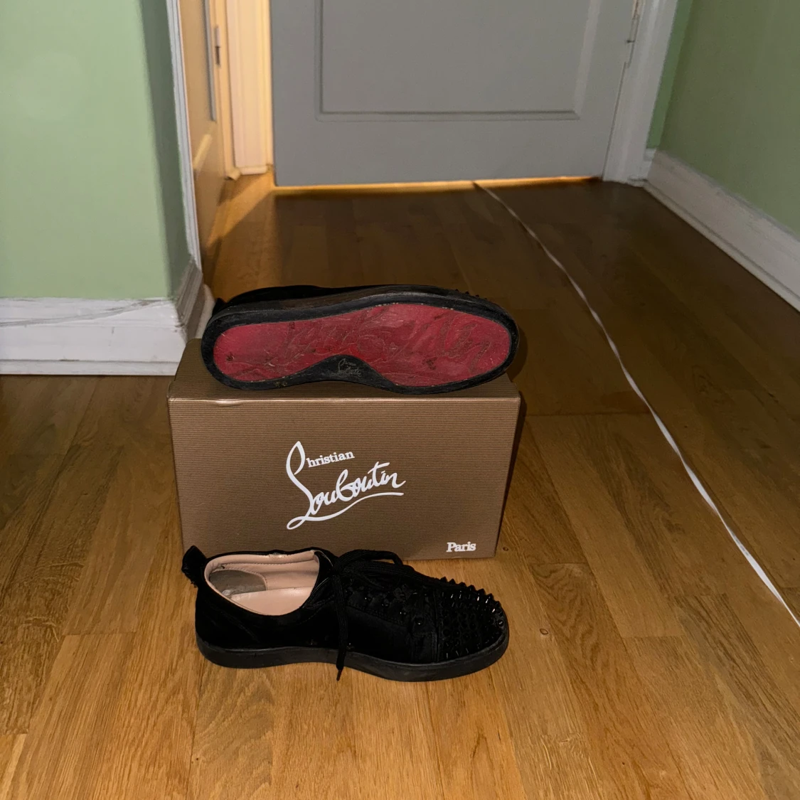 Tja säljer mina svarta loubtin skor för att de har blivit för små. 7/10 skick box och dustbag medföljer också. Meddela om fler frågor