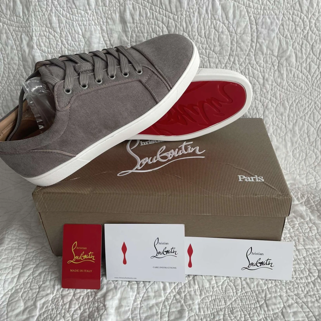 Säljer ett par snygga grå sneakers från Christian Louboutin i mocka. Skick 10/10, skriv privat för fler frågor.