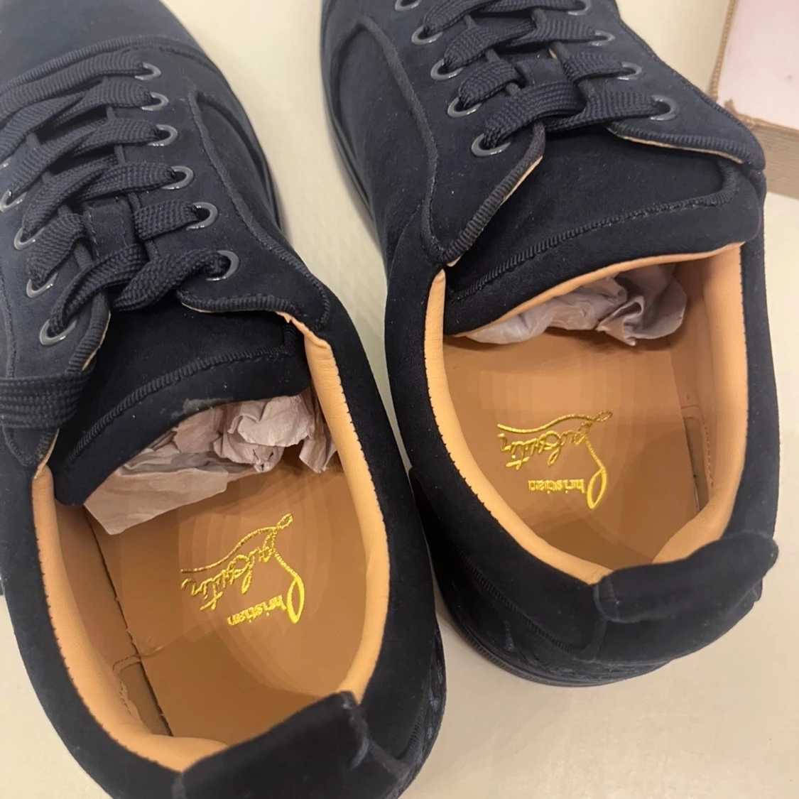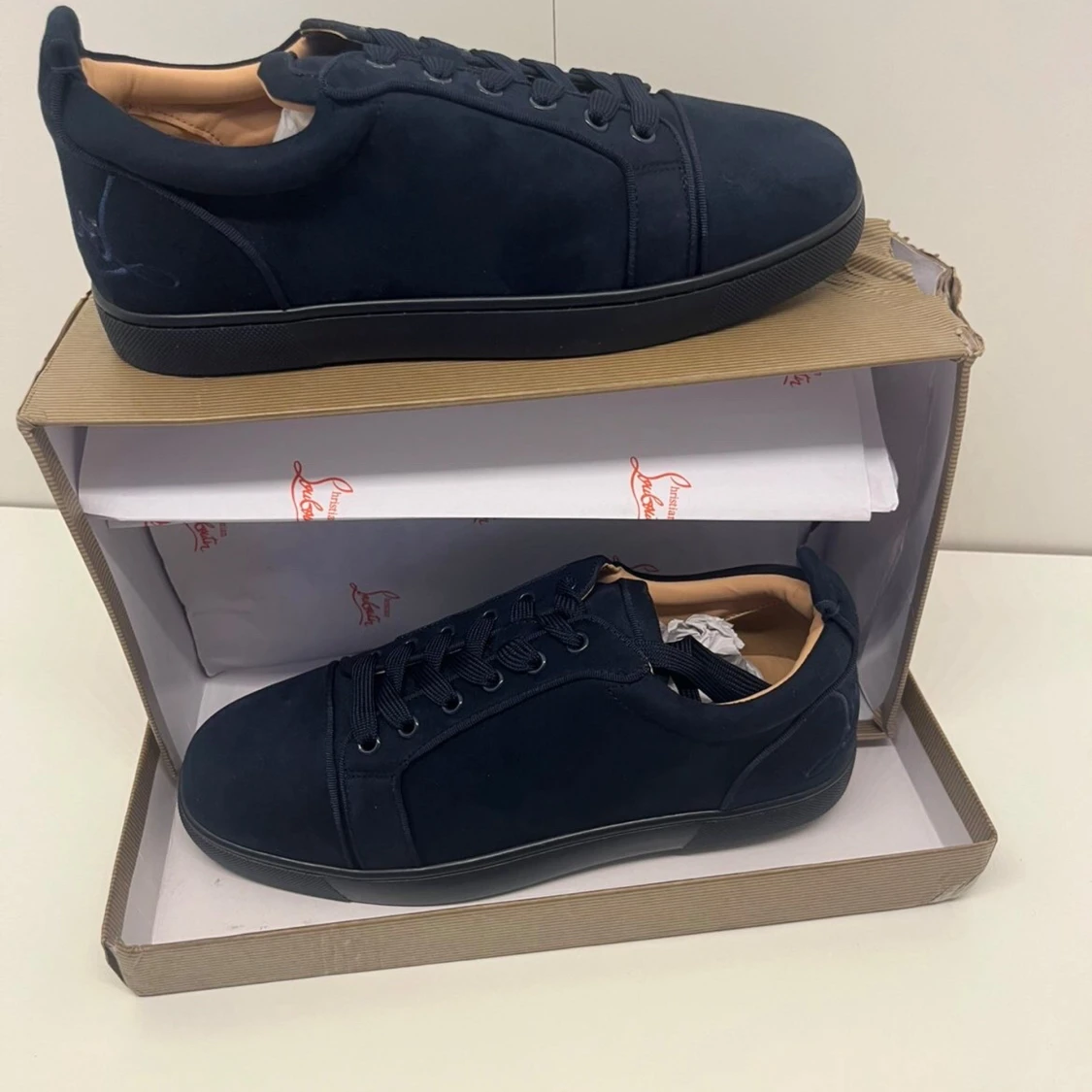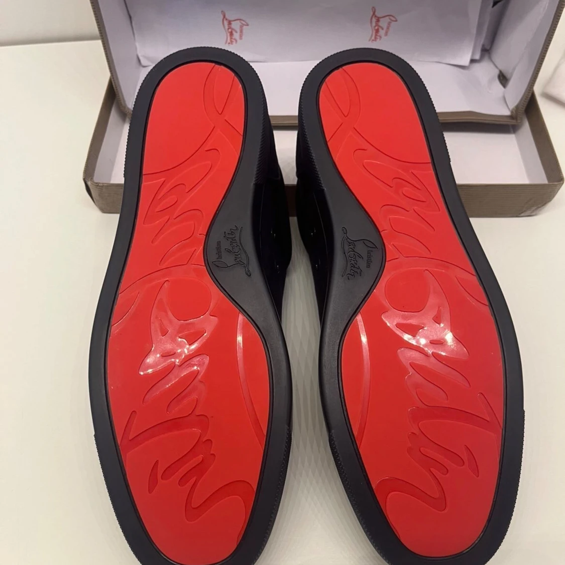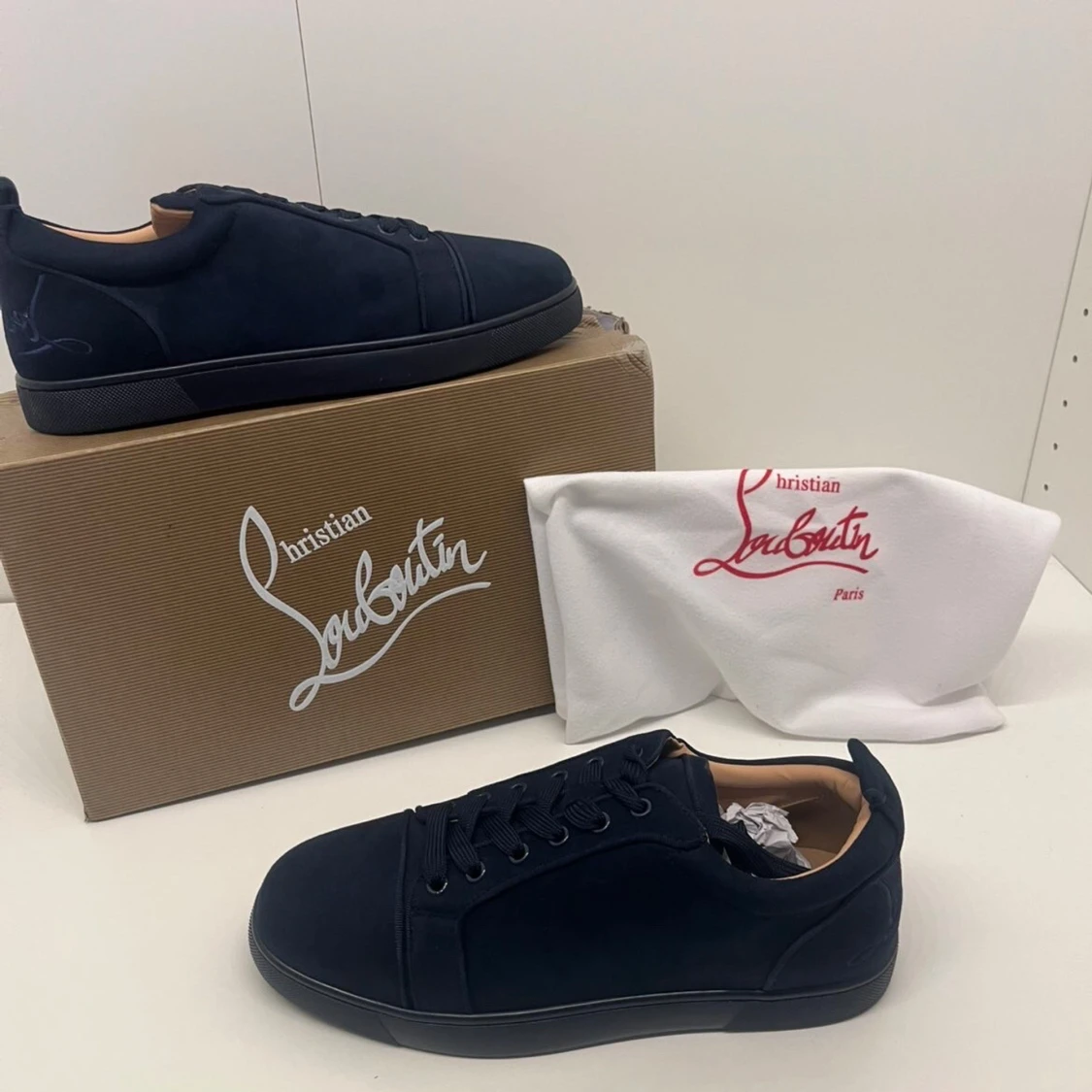 Ett par svarta Christian Louboutin skor utan spikar i storlek 44, de är helt nya aldrig använda och allt i bilderna kommer med. Pris kan diskuteras och skriv om du har några frågor.