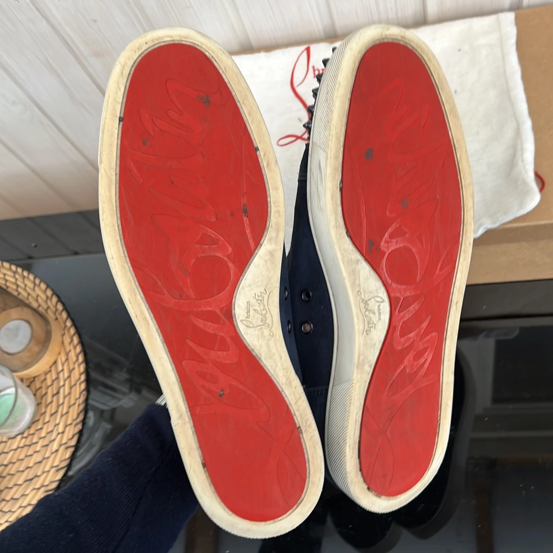 Säljer nu dessa galet feta loubs! Självklart äkta! Size 44! Skick 8/10 slitna hälar! Skorna är precis tvättade därav mörkare toner på vissa delar av skorna! Box, dustbag ingår. Hör av dig vid minsta fundering🤩 mvh TREND STORE
