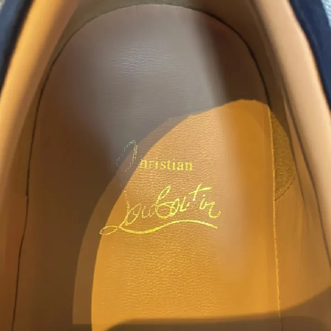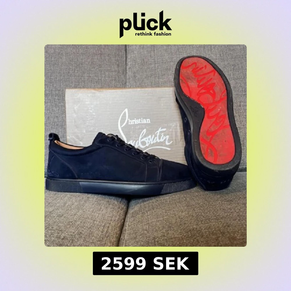Snygga svarta sneakers från Christian Louboutin i mocka med klassisk röd sula och diskret logga på sidan. Skorna har rund tå, snörning och en stilren design som passar perfekt till streetwear eller en mer dressad look. Kvitto ingår självklart! Snabb affär prioriteras!