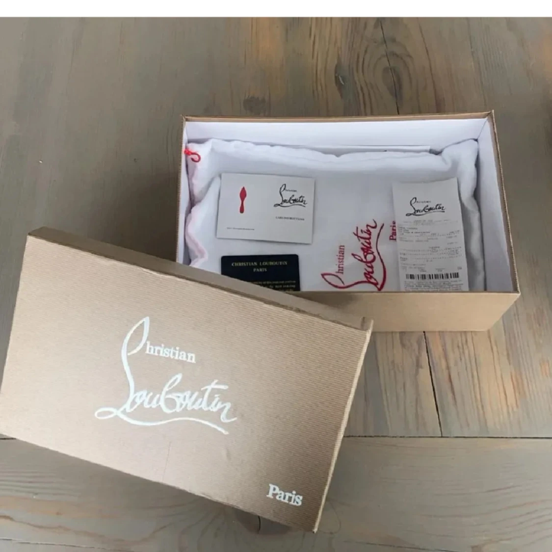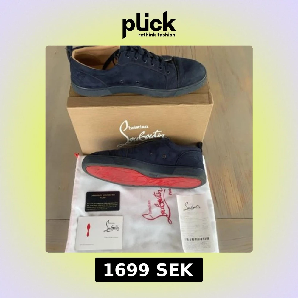 Snygga mörkblå sneakers från Christian Louboutin i mocka med klassisk röd sula. Skorna har rund tå, snörning och svarta detaljer. Kommer med originalkartong, dustbag och äkthetskort. Perfekta för dig som vill sticka ut med exklusiva detaljer.