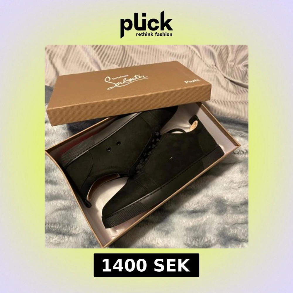 Säljer ett par svarta sneakers från Christian Louboutin med klassisk röd sula. Skorna har snörning och är tillverkade i en kombination av skinn och mocka. Snygg och stilren design med diskreta detaljer, levereras med originalkartong och dustbag.