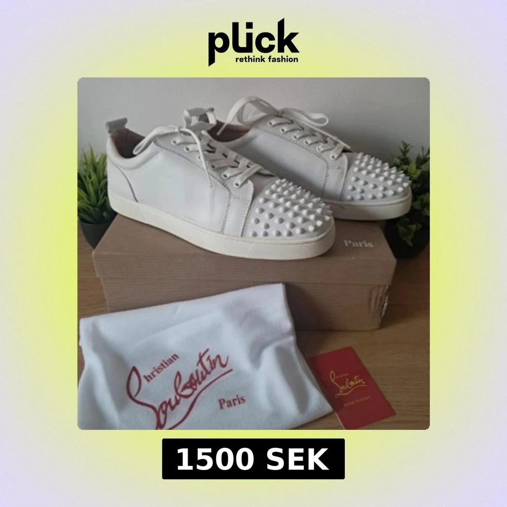 Snygga vita sneakers från Christian Louboutin med ikoniska röda sulor. Skorna är tillverkade i skinn, vilket ger en lyxig känsla. Perfekt för dig som vill sticka ut med en och exklusiv look. Passar stl44 skriv om ni har frågor, kan diskutera pris