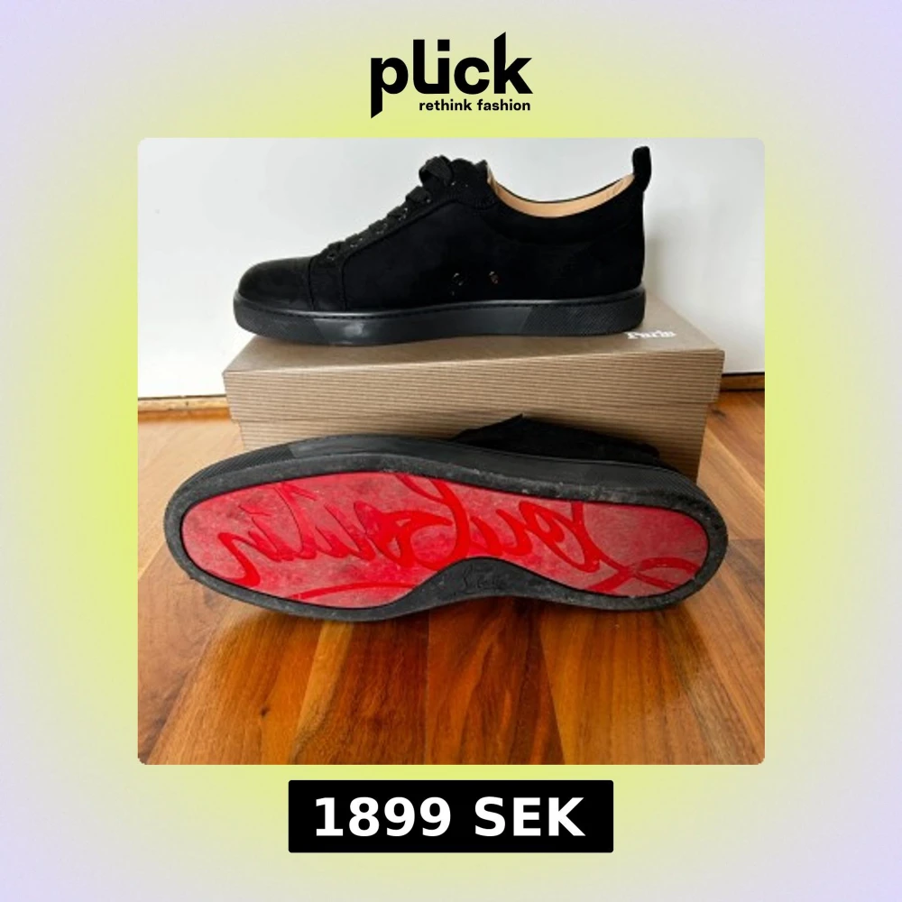 Säljer ett par stilrena Christian Louboutin sneakers i svart mocka. Diskret och elegant design med den klassiska röda sulan – perfekt för dig som vill ha ett lyxigt men clean uttryck. Andvända en gång och pris kan diskuteras
