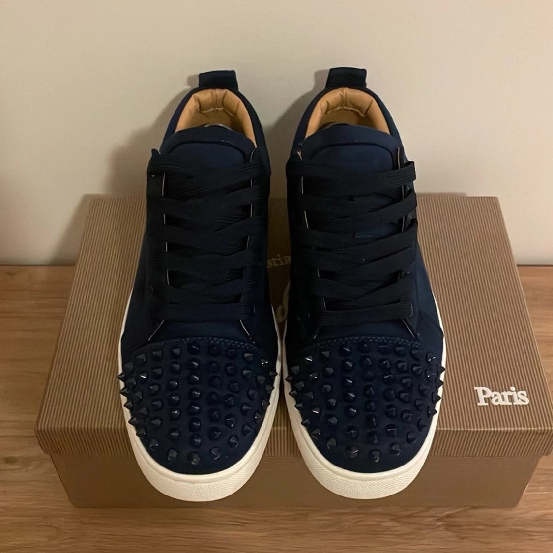 Säljer dessa feta Christian Louboutins i en skön marinblå mocha färg! Skorna är storlek 41 och kommer med extra spikar, Christian Louboutin, dustbag och original box! Skriv gärna vid funderingar! Priser är inte fast hugget i sten! Osäker på äktenhet dock utan äktenhetscertifikat!!!