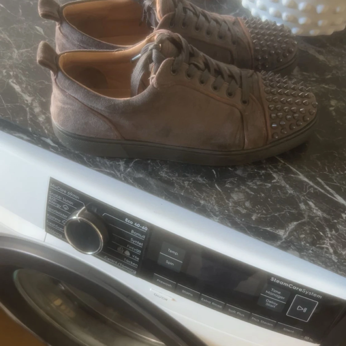 Tja, säljer nu mina christian louboutin då jag har tröttnat på dom och vill ha andra skor. Två nitar är borta tyvärr men inget som syns super mycket. Priset är ej hugget i sten bara höra av er om de finns intresse