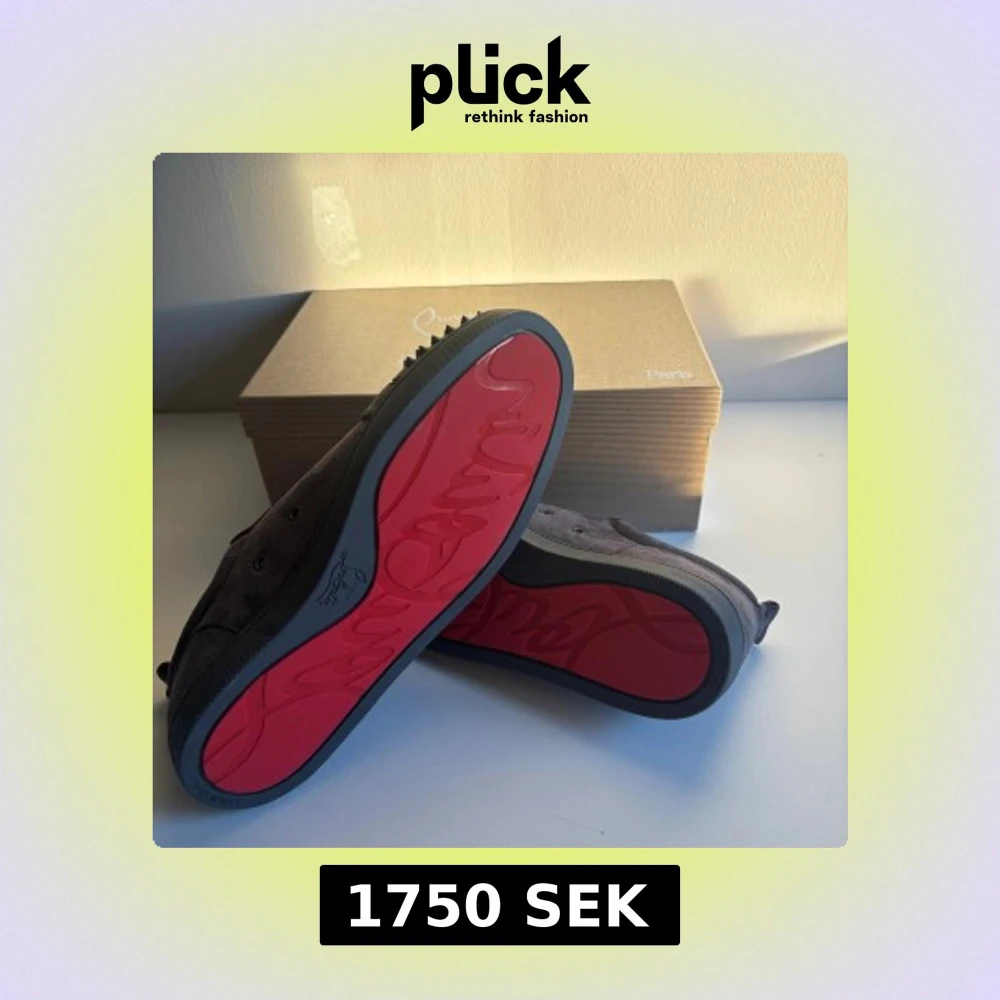 Säljer ett par grå sneakers från Christian Louboutin i mjuk mocka med ikoniska röda sulor och snörning. Säljer dessa helt nya aldrig använda st 44