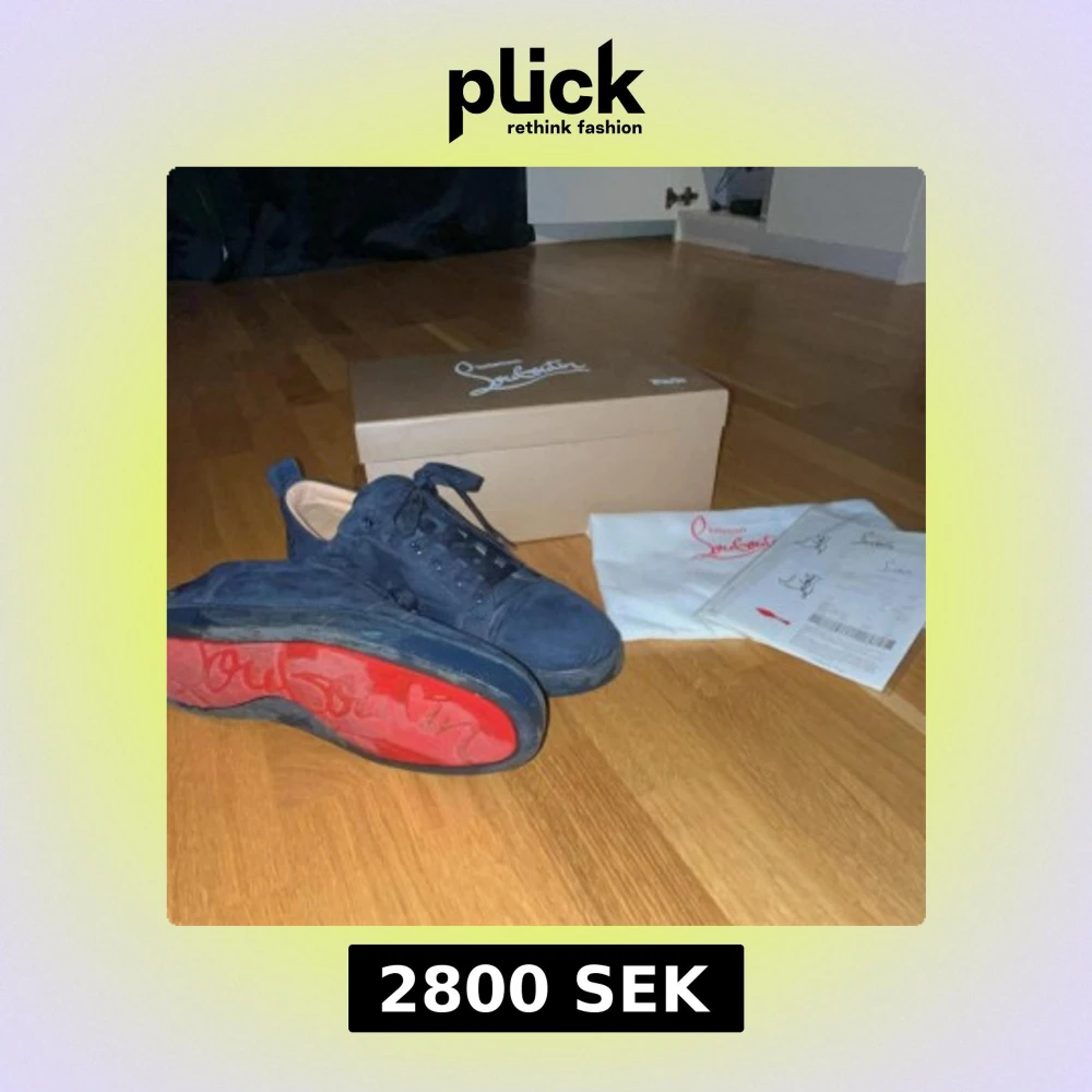 Säljer ett par mörkblå sneakers från Christian Louboutin i mocka med klassisk röd sula. Kommer med originalkartong och kvitto. Skorna är som nya och har tagits väl hand om.