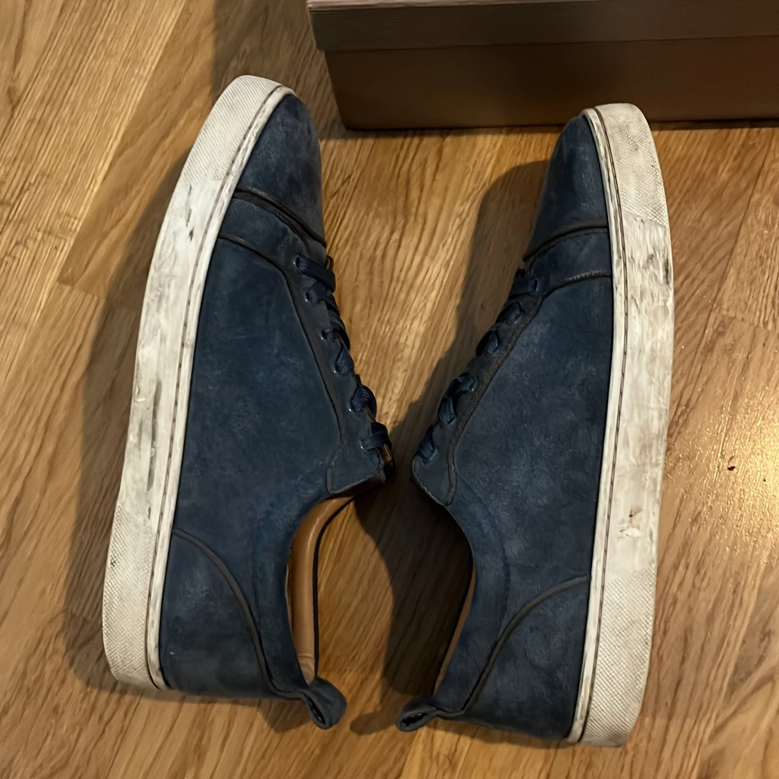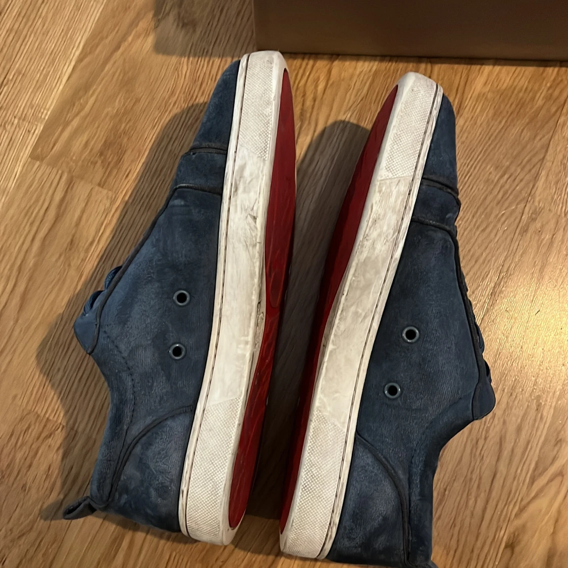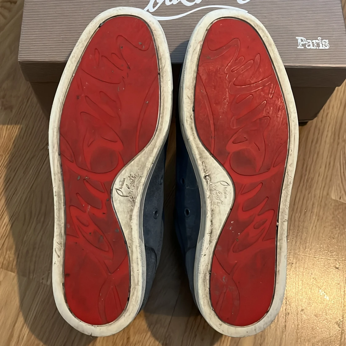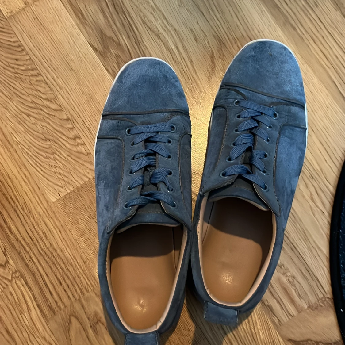 Ett riktigt fint och stilrent par blåa Louboutin skor i väldigt fint skick förutom en liten slitning på snöret som inte syns och även att texten inuti skosulan inte är så tydlig längre men det är ju ingenting som syns ändå. De skulle behöva en tvätt bara men jag använder inte skorna längre så jag orkar inte fixa med de så jag säljer de bara istället. Som sagt riktigt fina i bra skick men kan behöva en tvätt bara. Dustbag och låda tillkommer med skorna. Hör av er vid frågor bilder eller fundering