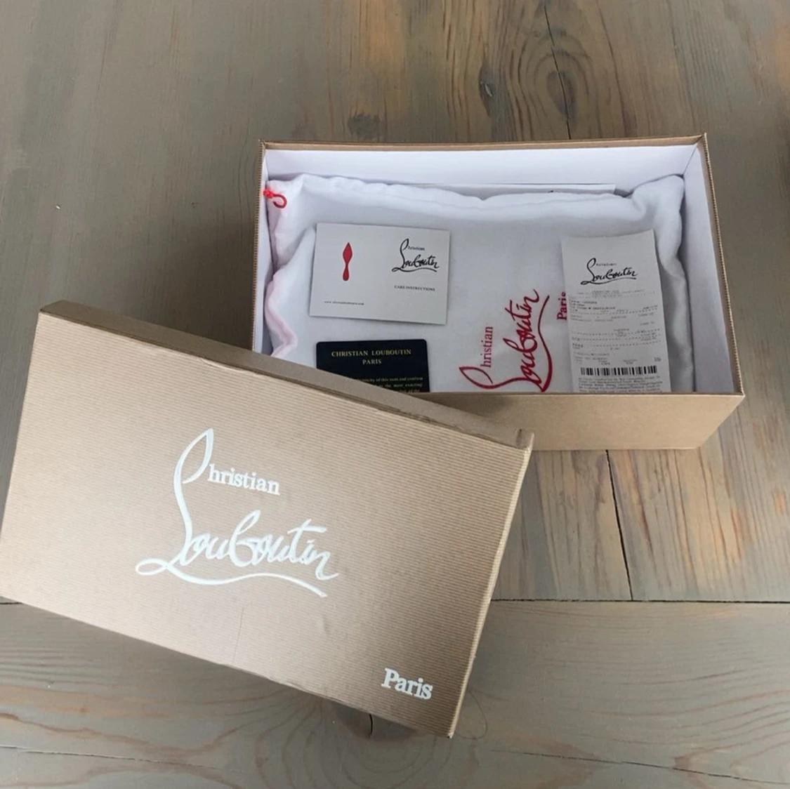 Snygga mörkblå skor från Christian Louboutin i mocka med klassisk röd sula och diskret logga på sidan. Skorna har rund tå, snörning och en stilren design som sticker ut med den ikoniska röda undersidan. Kommer med originalkartong och dustbag samt kvitto