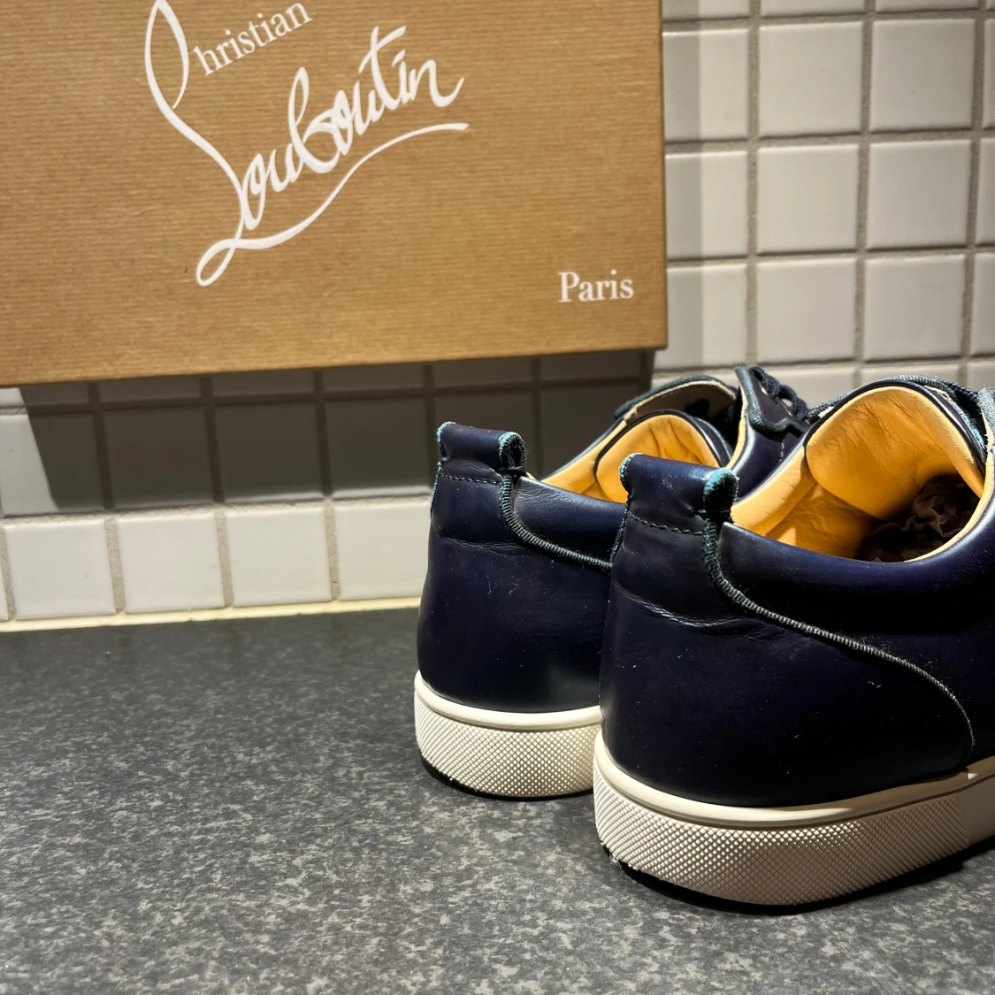 Tja, just nu så säljer jag mina Snygga mörkblå sneakers från Christian Louboutin. skorna är väldigt fint skick och endast testade ute en gång. allt original kommer med med boxen är till en annan sko. Har du några frågor så är det bara att ställa dem och jag tar alltid byten om du bor i Stockholm. skorna är självklart äkta. Mvh Oscar