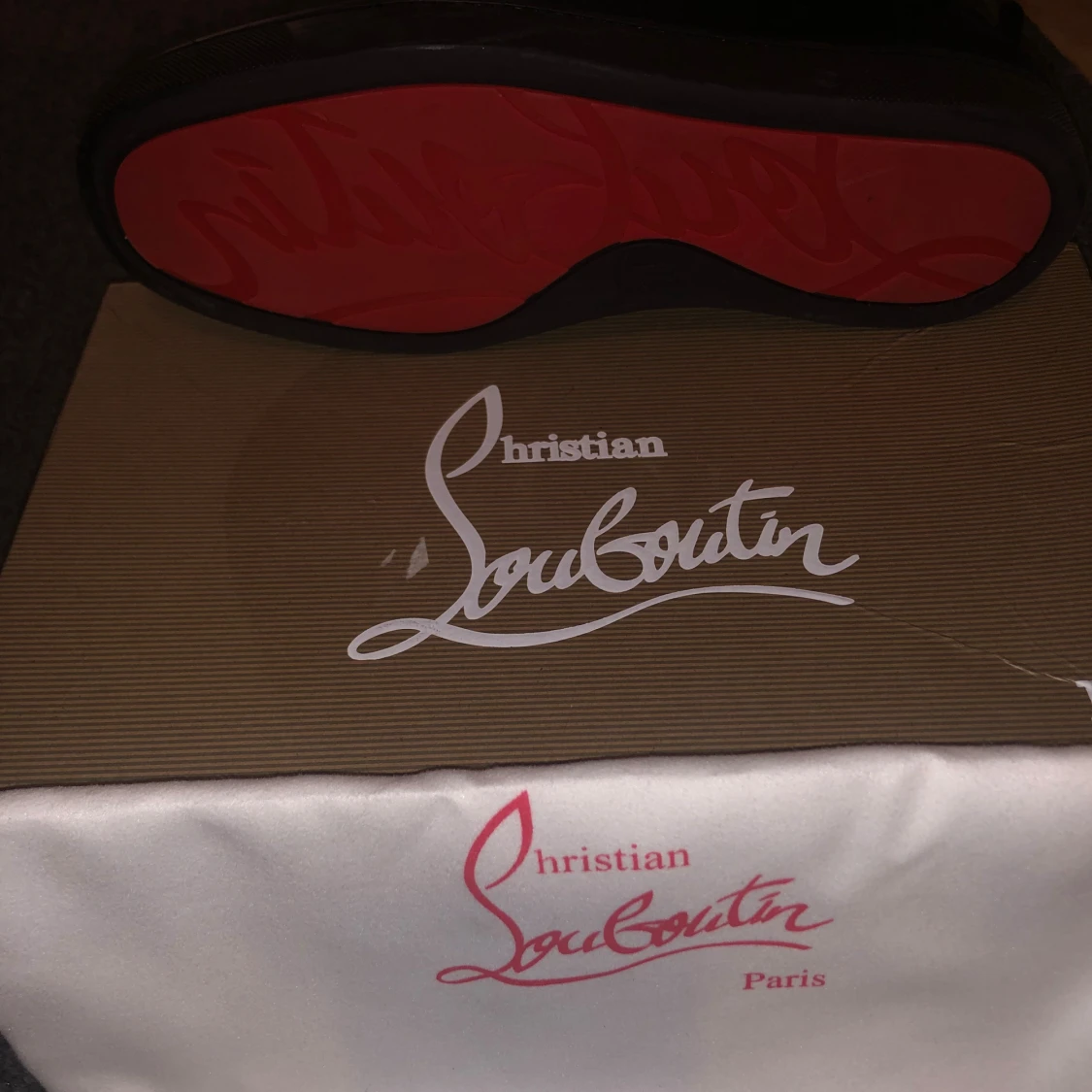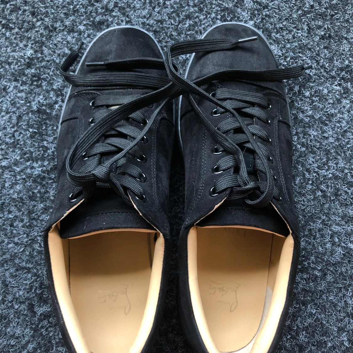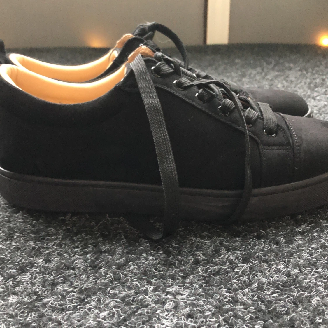 Snygga svarta sneakers från Christian Louboutin i mocka med klassisk röd sula använda fåtal gånger ungefär 2-3 gånger kommer dessutom med box och dustbag priset kan diskuteras!