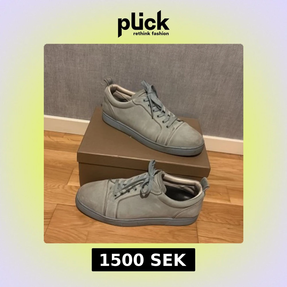 Feta ljusblå loubs utan spikar. Helt okej skick, sakerna som sticker ut är snöre spruckit där bak och de har tappat formen vid innersidan då jag haft andra sulor inuti. Det låga priset är av dessa skäl och att jag inte har kvar orginalinnersulan