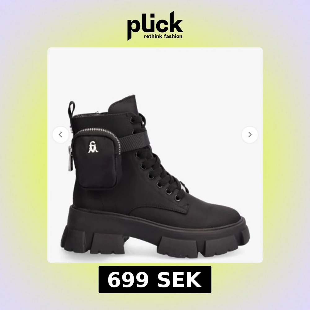 Svarta boots med chunky sula från Steve Madden. Skorna har snörning, dragkedja på sidan och en avtagbar liten ficka med silverdetaljer. Tillverkade i syntetmaterial med rund tå och cool urban vibe. Nypris 1700