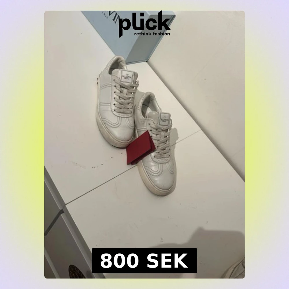 Säljer ett par vita Valentino Garavani sneakers i skinn med snygga detaljer och snörning. Skorna har en cool kamouflagemönstrad sula och klassisk rund tå. Perfekta för dig som vill ha en clean men ändå unik look tveka inte på att skicka dm för frågor.