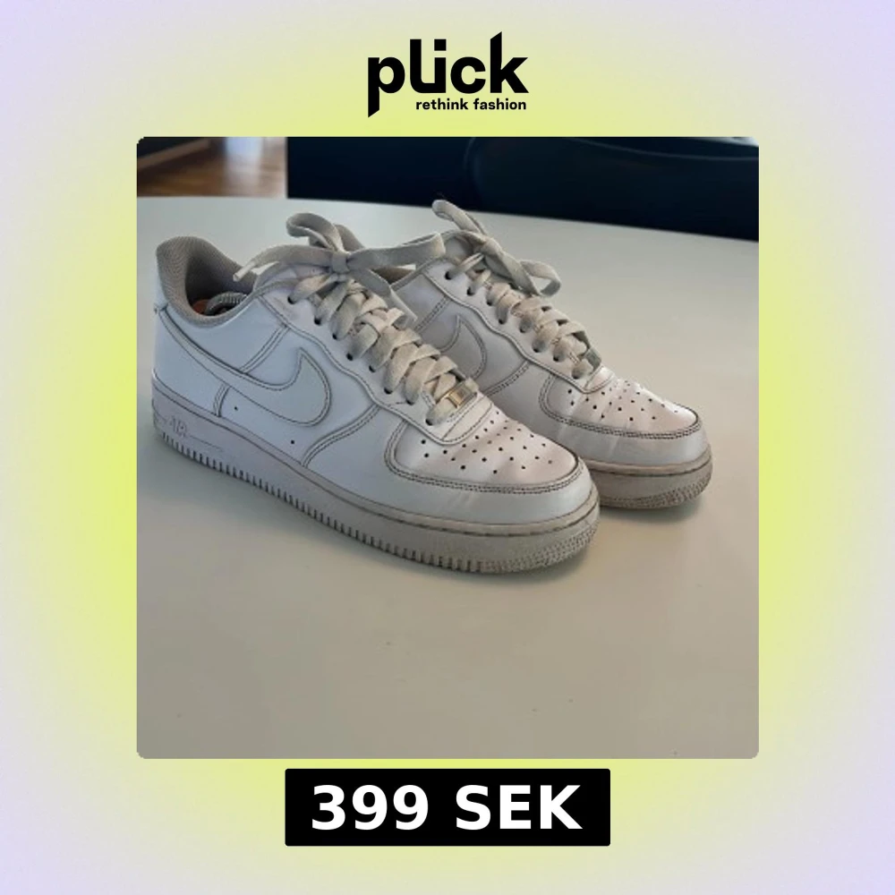 Klassiska vita Nike Air Force 1 sneakers med snörning och perforerade detaljer på tån. Skorna har en platt sula och är tillverkade i syntetmaterial med Nike-logga på sidan. Nypris: ca 1500 kr och mitt: 399 kr. Perfekta för en stilren och sportig look. Skriv bara om du har frågor, priset kan diskuteras!