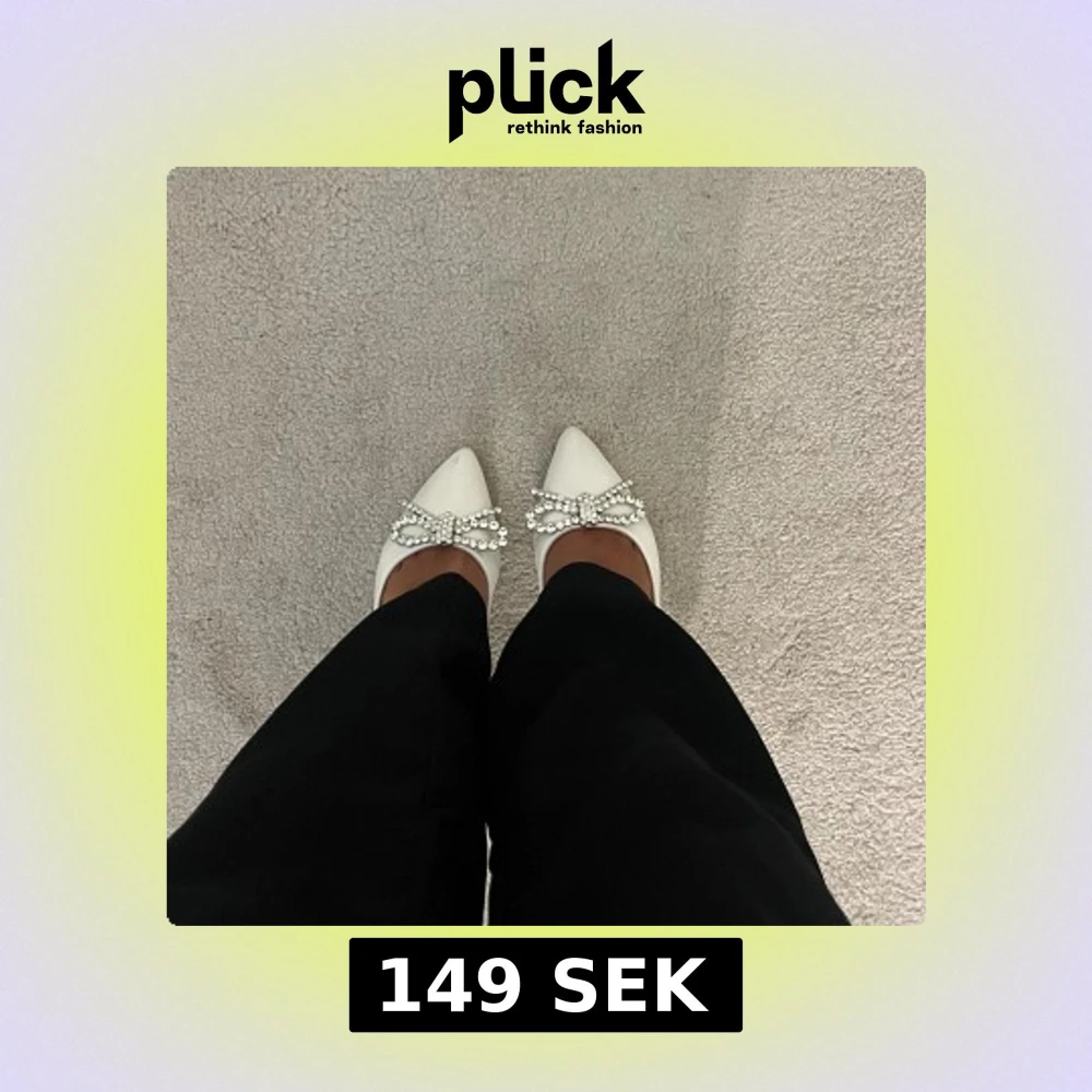 Söta klackskor med en glittrig rosett på💗har låg klack och är aldrig använda då de var förstora för mig. Storlek 38 men passar också nån med storlek 39 eller wide fit.