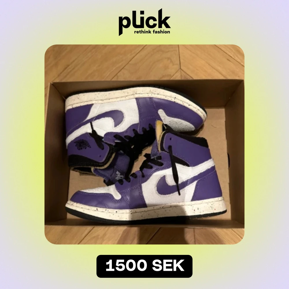 Säljer nu ett par feta Jordan 1 high zoom air cmft. De är lila. De har en slitet utseende, vilket ser riktigt snyggt ut. Knappt använda, mycket bra skick. Storlek 41. Kvitto och allt finns med. Skriv vid intresse. Pris kan diskuteras