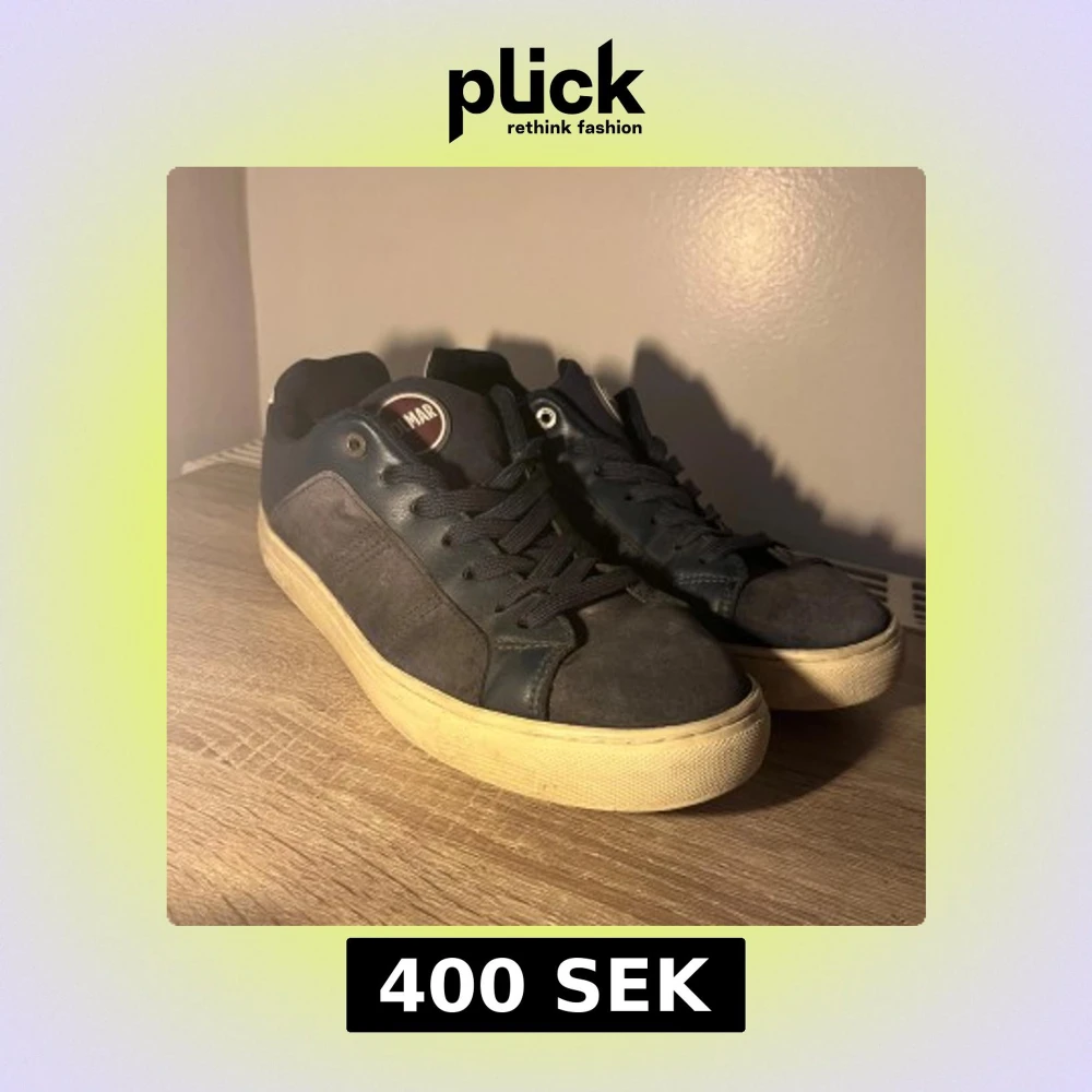 Snygga mörkblå sneakers från Colmar i storlek 43. Skorna har ovandel i mocka och skinn, vita detaljer baktill och vit platt sula. Klassisk rund tå och snörning framtill. Perfekta för dig som gillar stilrena och sportiga skor.