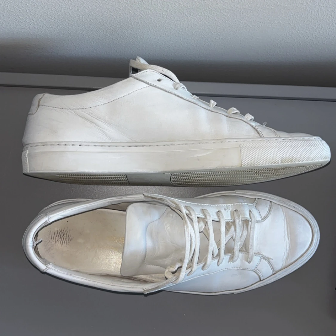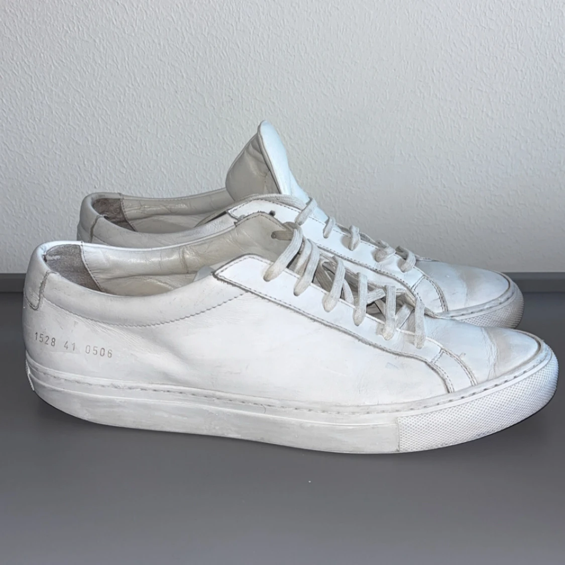 Vita sneakers från Common Project | Storlek 41 (fits 42) | Bra skick 8/10, men använda som ni ser. Smuts som är enkelt o tvätta bort | Vid snabb affär kan jag sänka. SÅLDA PÅ TRADERA✅
