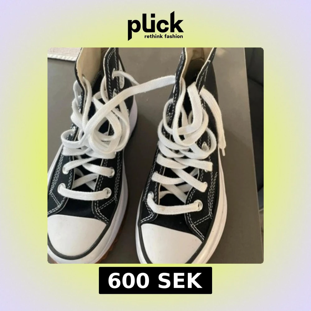 Säljer ett par klassiska svarta Converse Chuck Taylor All Star sneakers med vit tå och vita snören. Skorna har hög modell, tydliga vita sömmar och en tjock, räfflad sula som ger extra attityd. Perfekta för dig som gillar streetstyle och tidlös design.