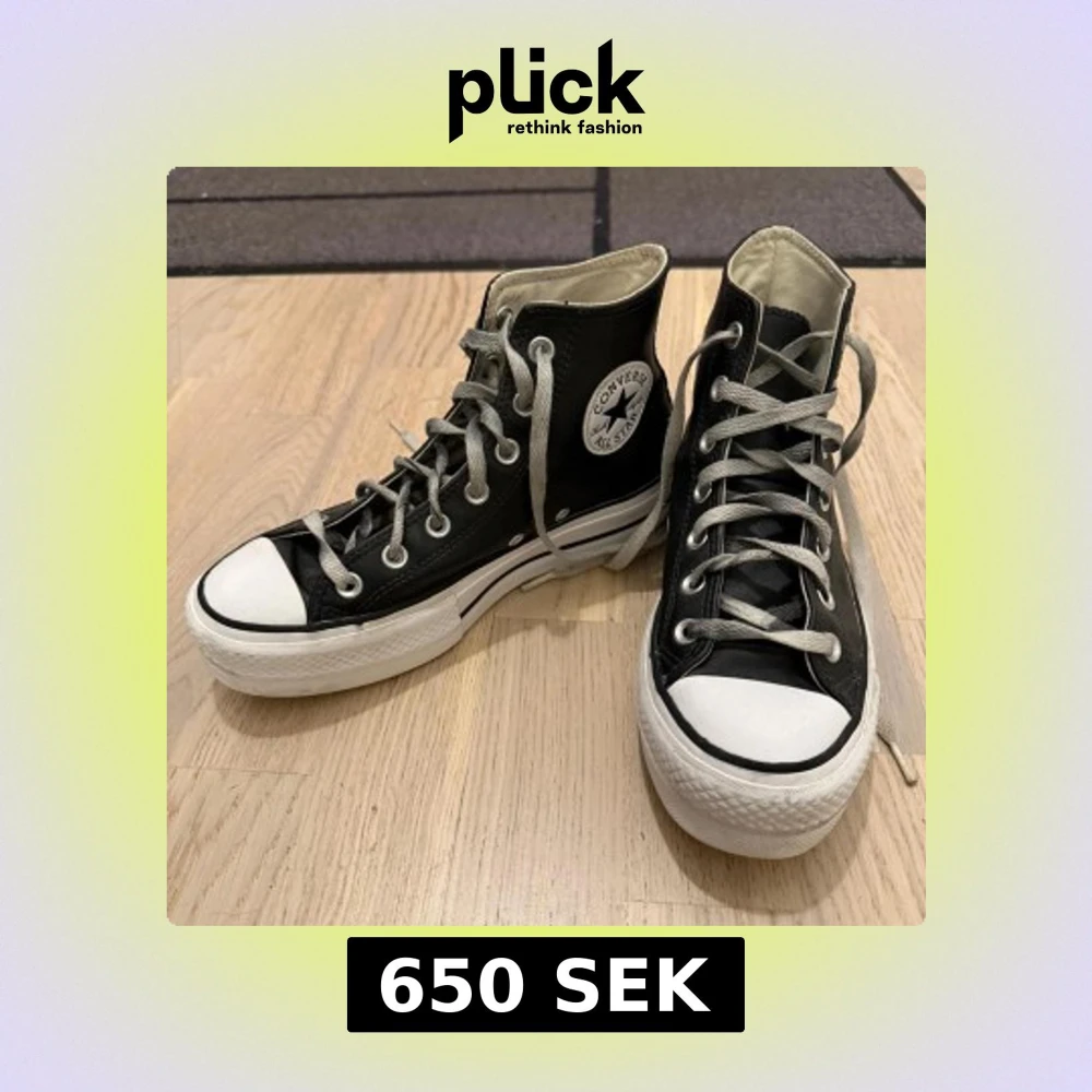 Klassiska svarta Converse All Star high-top sneakers i skinn med vita gummisulor och tåhätta. Skorna har grå snörning, rund tå och tydlig logga på sidan. Perfekta för dig som gillar en tidlös och cool stil.