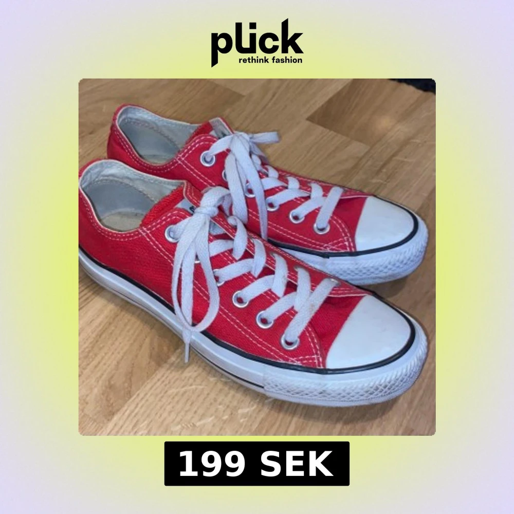 Klassiska röda Converse All Star sneakers med vit tå och vita snören. Lågt skaft, rund tå och platt sula. Ovandel i canvas med vita kontrastsömmar och svart rand på sulan. Perfekta för en avslappnad och cool stil.