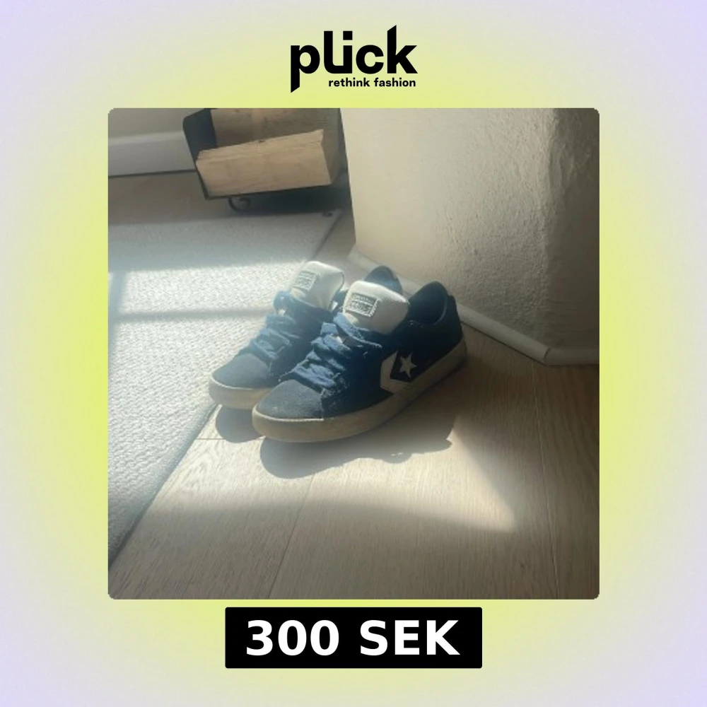 Snygga Converse CONS sneakers i mörkblå mocka med vita detaljer och logga på sidan. Skorna har platt sula, rund tå och klassisk snörning. Perfekt inför hösten som kommer. Bra skick