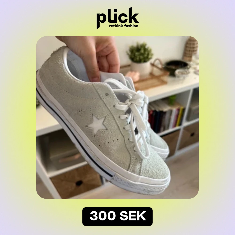 Säljer dessa jättefina och populära grå, turkos Converse skor i stl 39