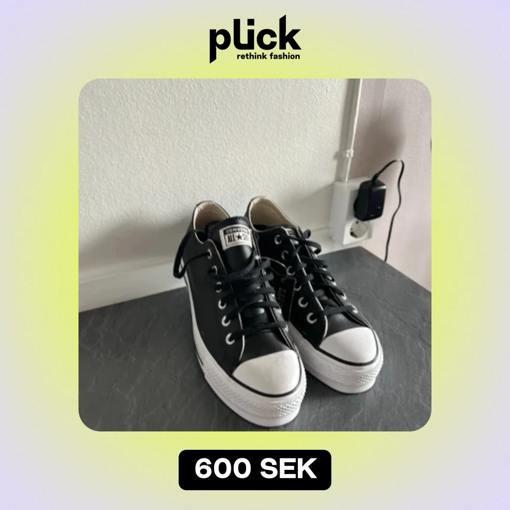 Enbart provade hemma, prislapp sitter kvar. oanvända Svarta Converse i skinn med platå, strl 39 (24,5 cm) säljes.