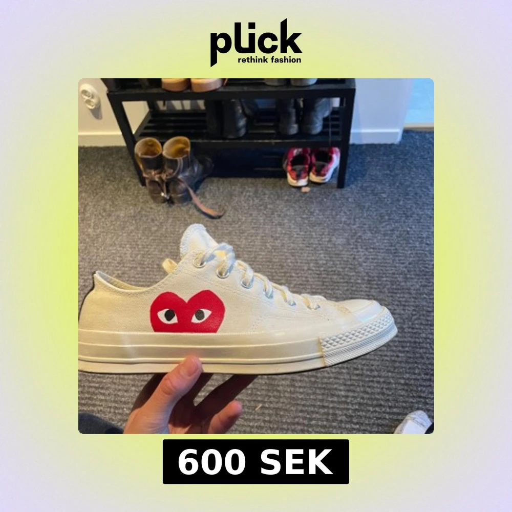 Creme färgade cdg X Converse skor i superbra skick. Endast använda 4 gånger. Skriv om ni har frågor eller funderingar!